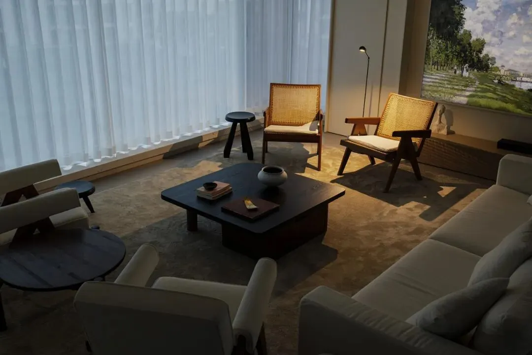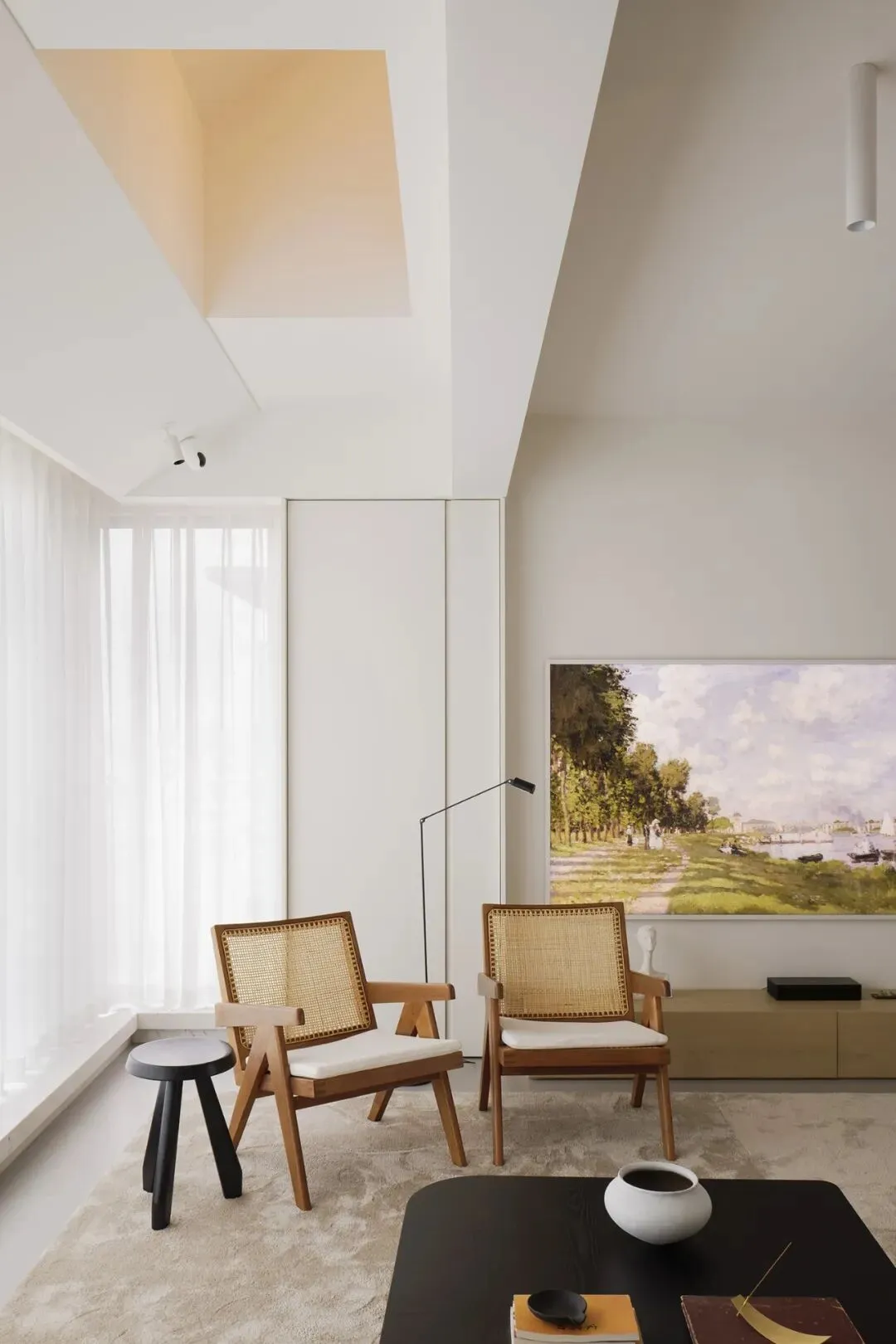 而藏在墙体和梁体间的反口灯带正计算着最舒适的空间驻留参数。