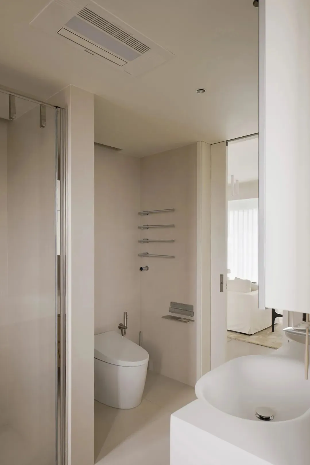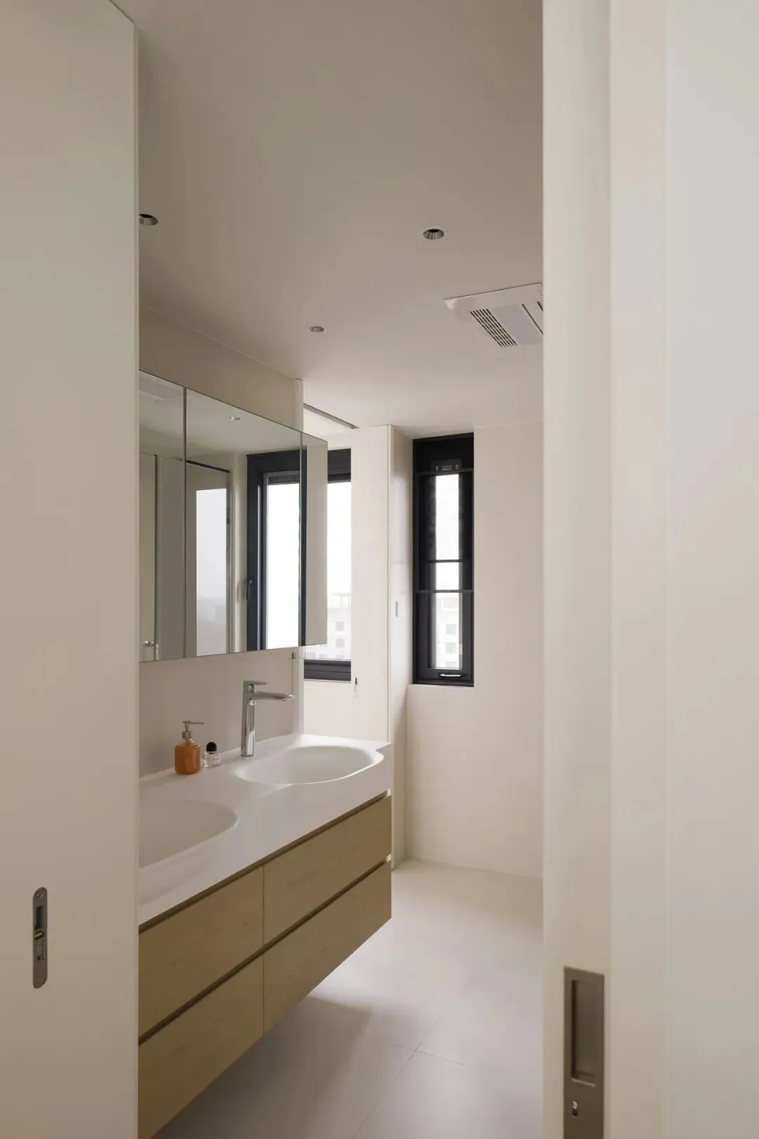 卫生间的尺度被重新定义,不再仅是功能性的存在,而是让每一个夜晚的辗转都获得从容的过渡,所有转折处都留有恰当的余量,让动作的滞涩也能找到流畅的路径。