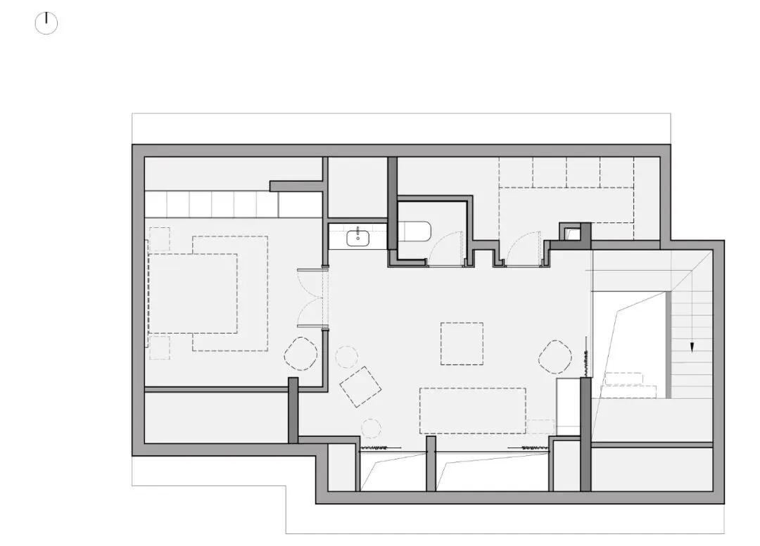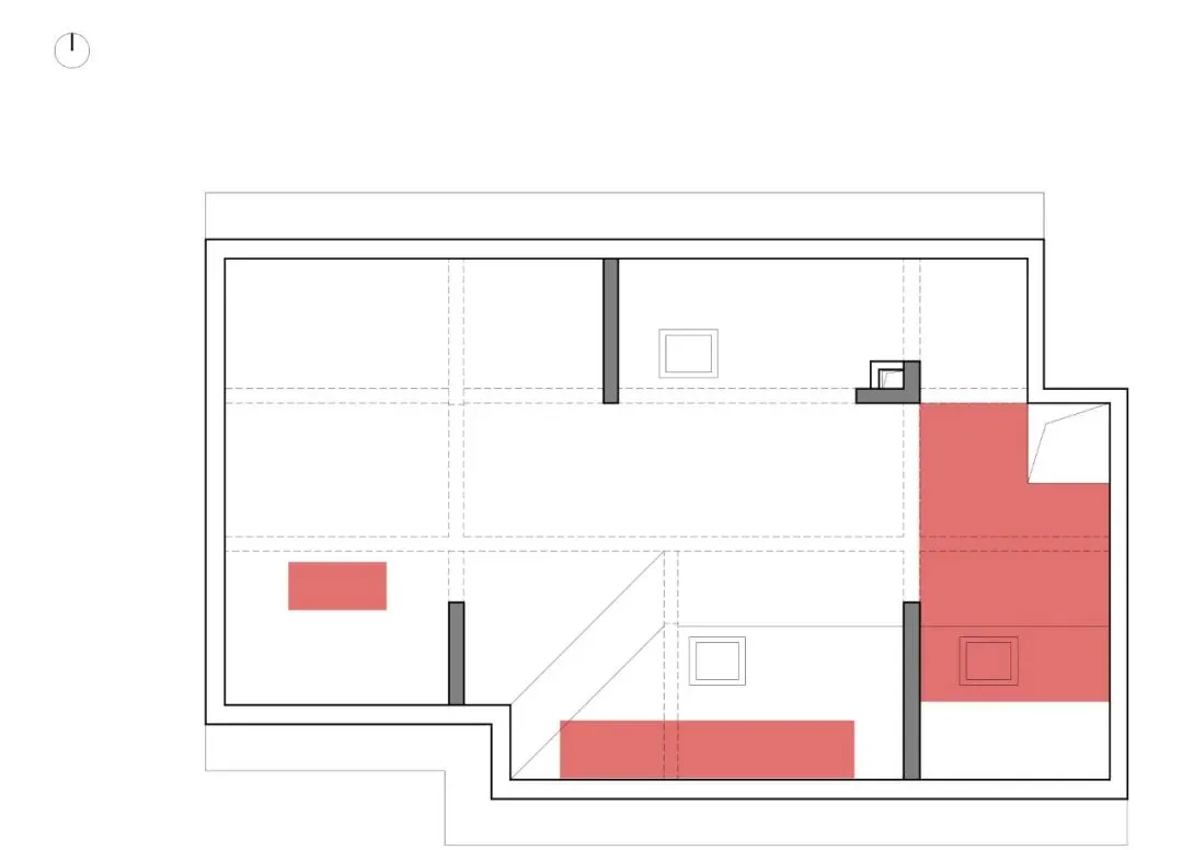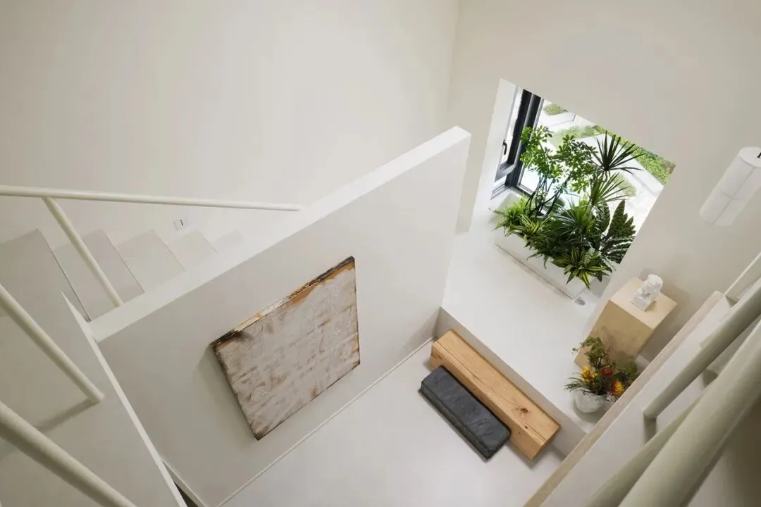 楼梯的负形被重新赋予意义,收纳空间嵌入建筑骨骼之中。