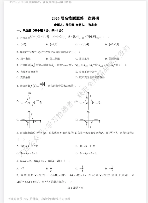 【江苏卷】【南京六合区名校联盟】【高三一模(2026.3)】2026届江苏省南京市六合区名校联盟高三下学期第一次调研(一模)(2026.3开考)