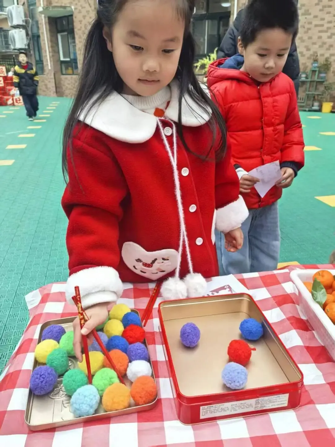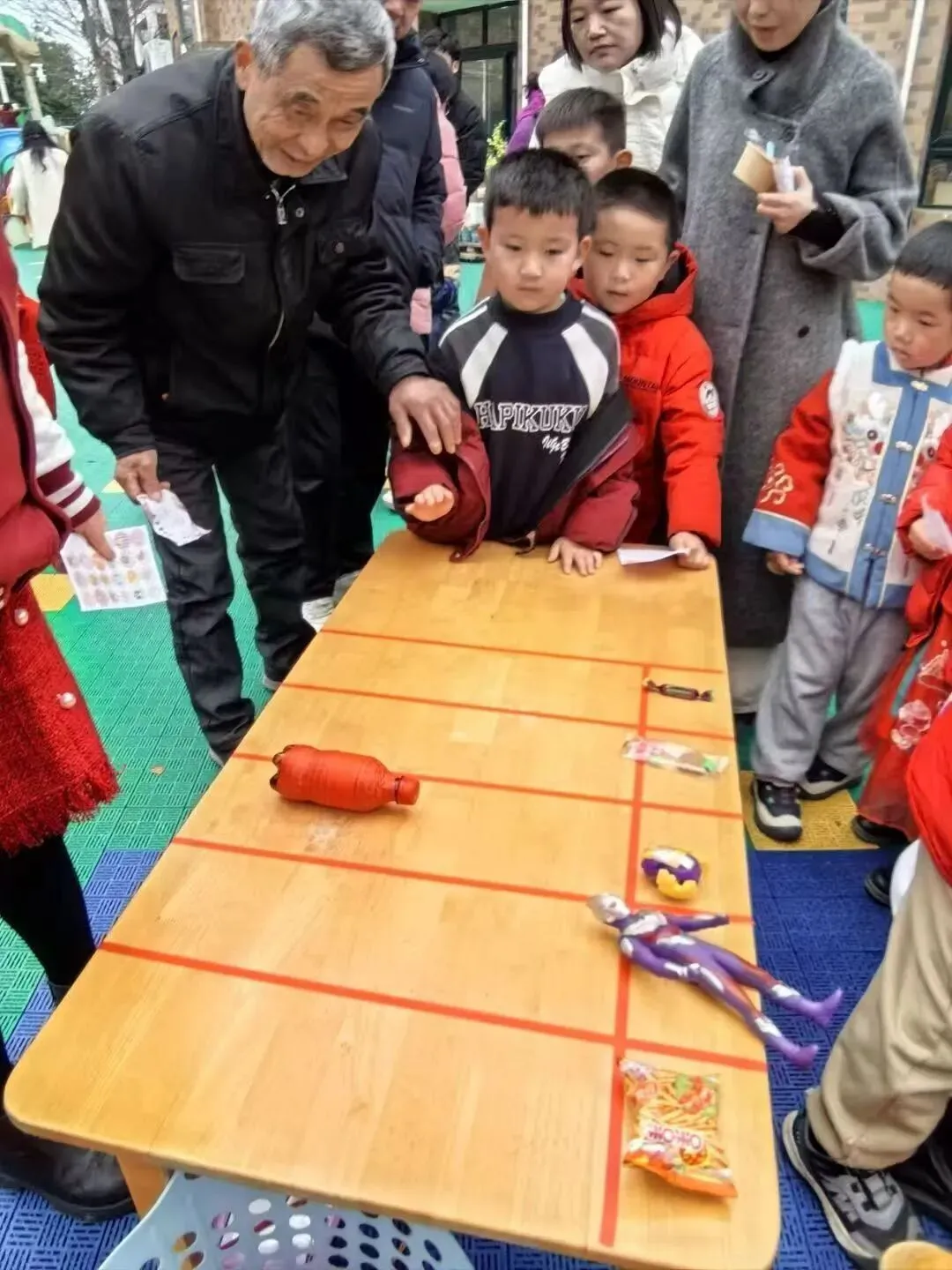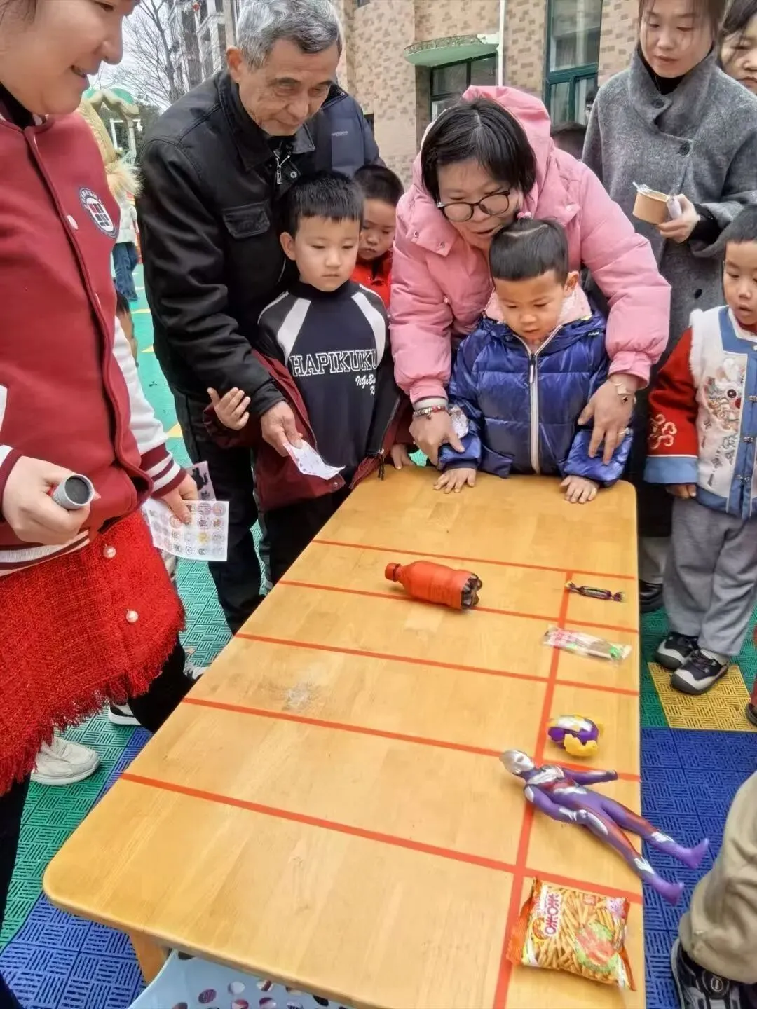 游园会最热闹的项目非它莫属!孩子们小手发力,让小球滚滚向前,寓意新一年财源滚滚、好运连连。欢呼声、加油声此起彼伏,整个校园都充满了节日的喜庆与热闹。