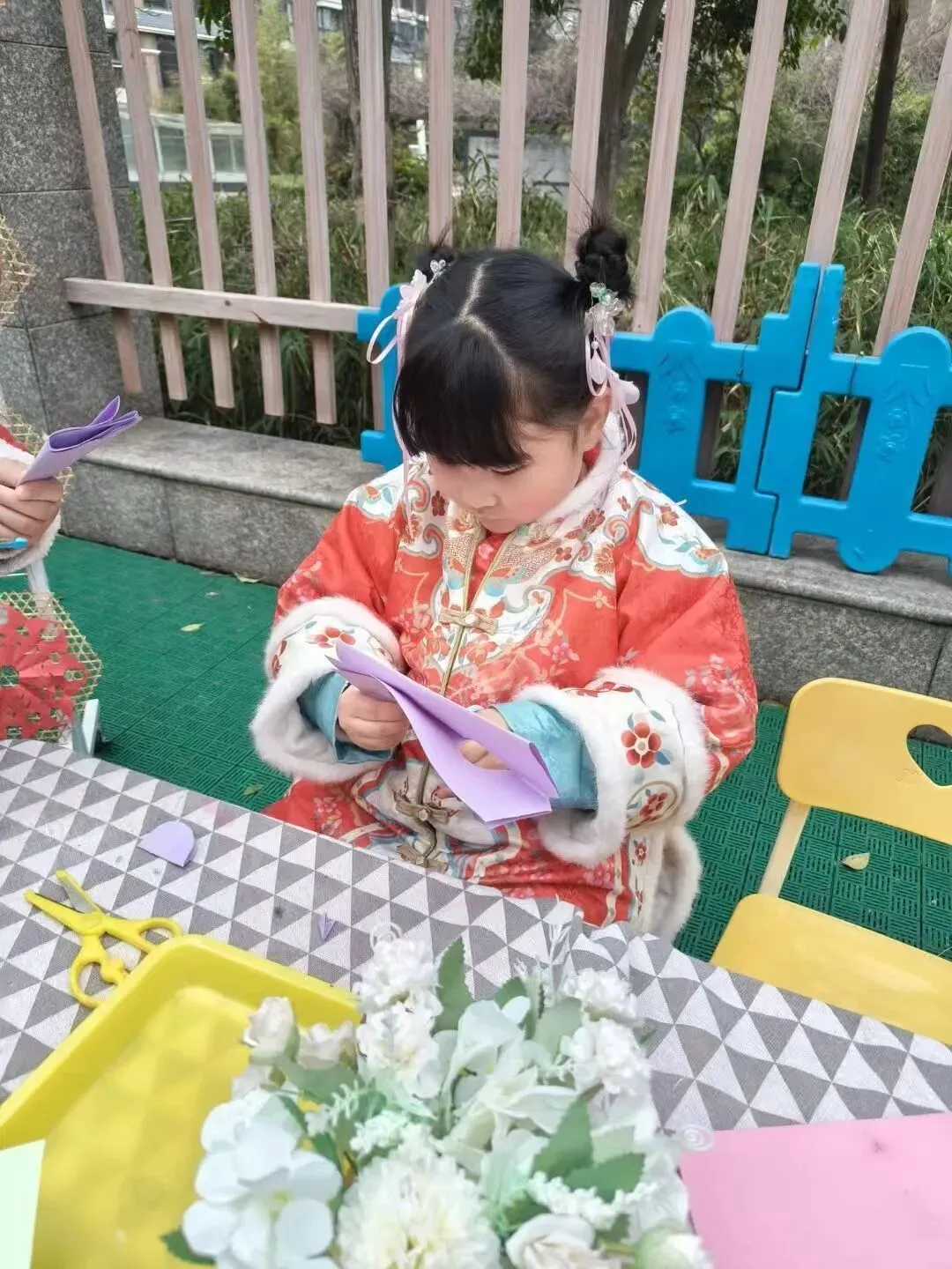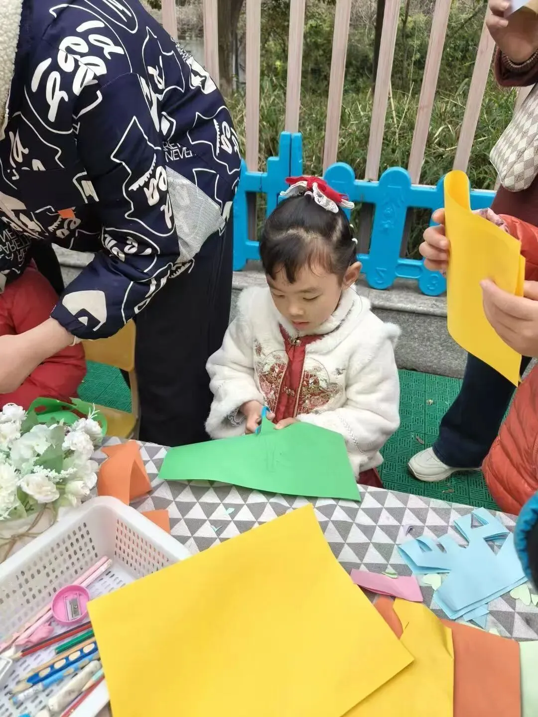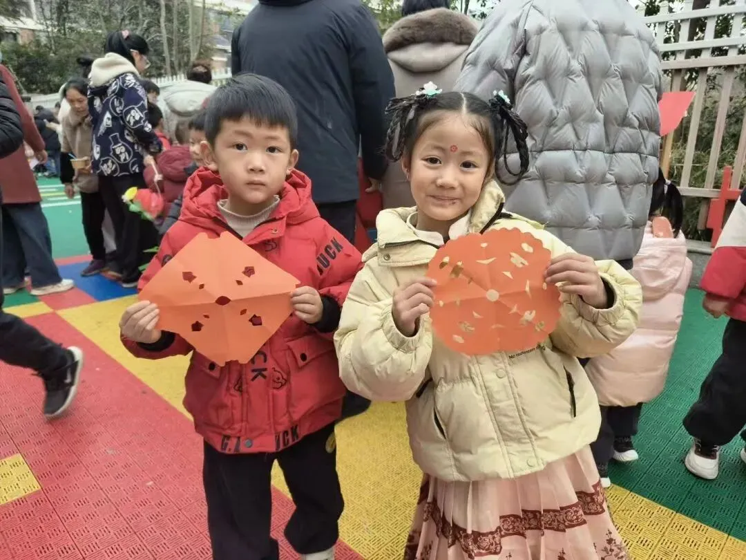 红纸轻折,剪刀慢剪。在家长的陪伴下,孩子们化身小小非遗传承人,折叠、裁剪、创作,一张张喜庆的窗花在指尖绽放。红红火火的窗花,映着孩子们灿烂的笑脸,让传统年味在幼儿园里温暖流淌。