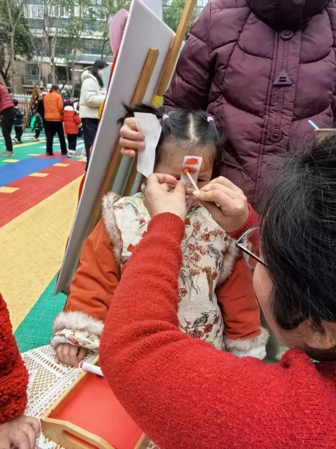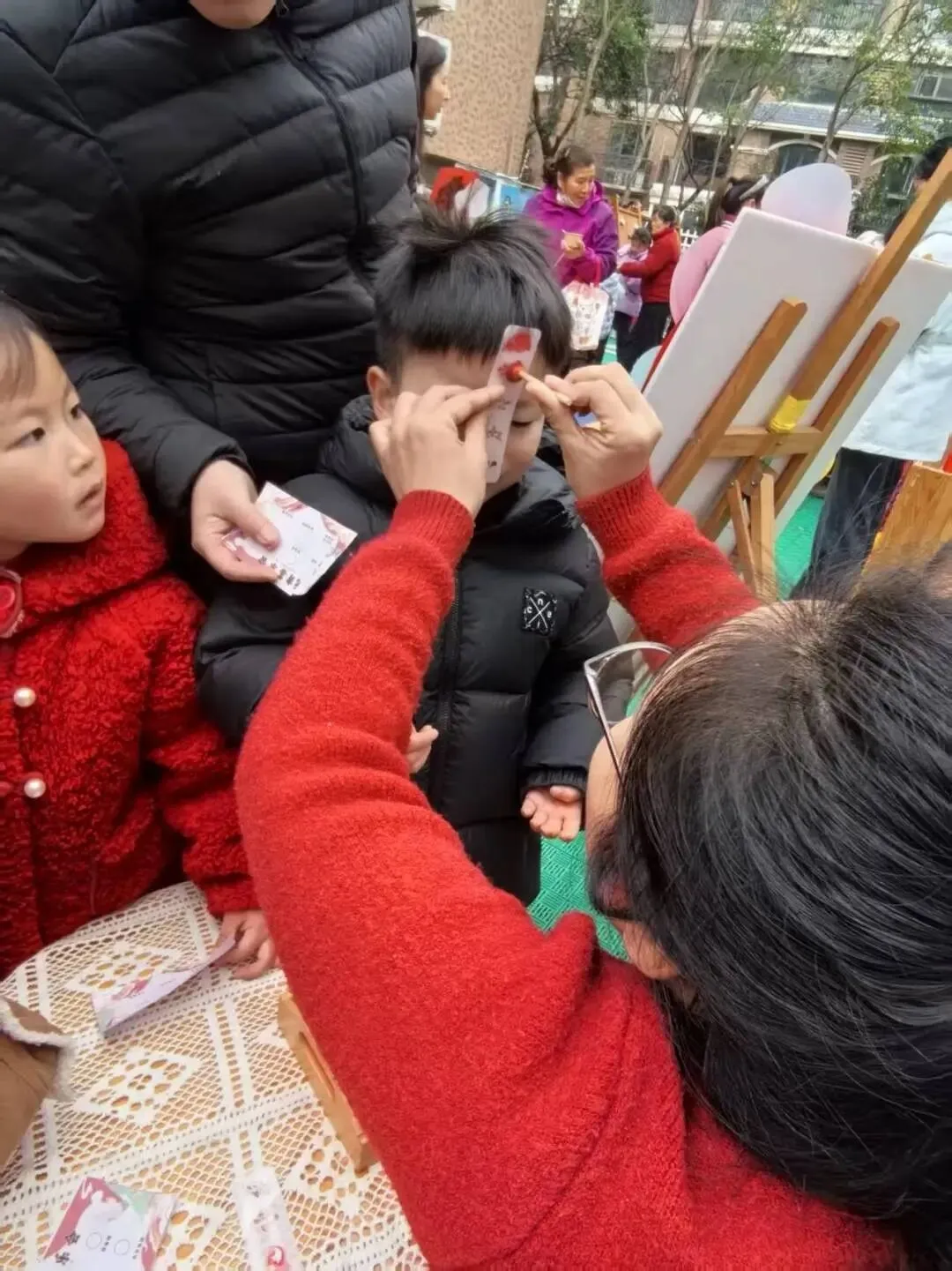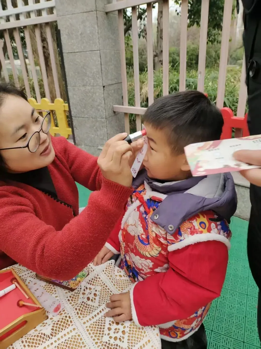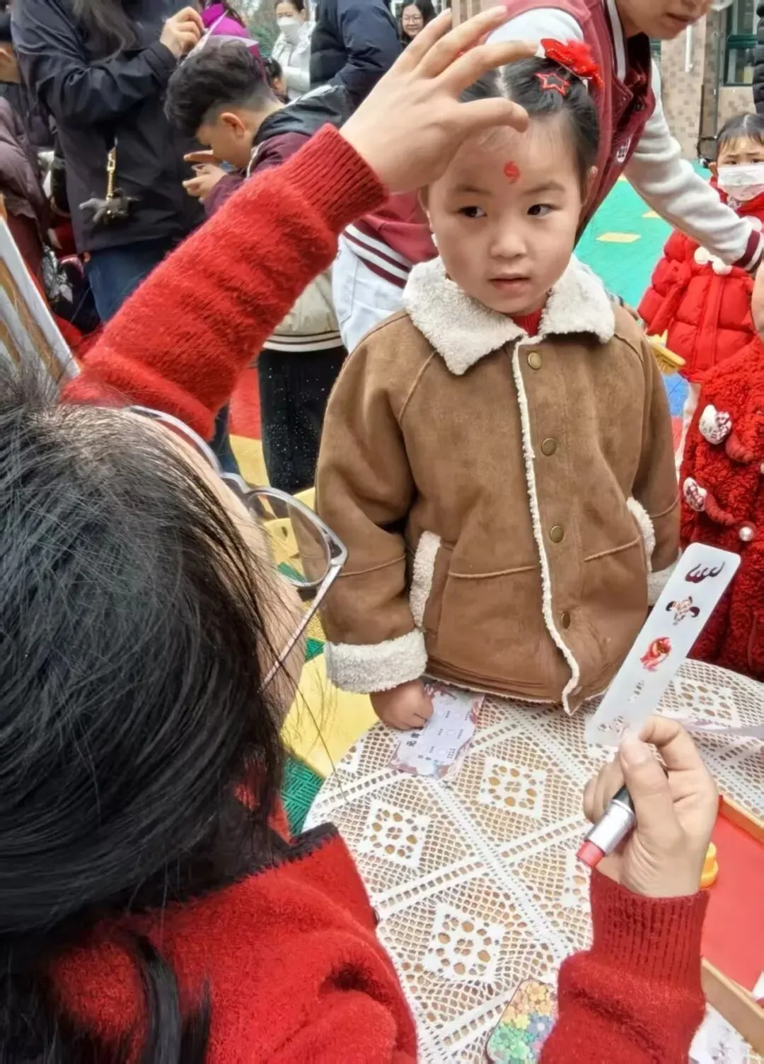 古风味十足的画面额,是元宵最温柔的仪式感。老师与家长轻轻为孩子点上精致的面额,红韵点点,吉祥如意。一笔一画皆是祝福,愿宝贝们平安喜乐、聪慧健康,在传统文化的浸润中快乐成长。