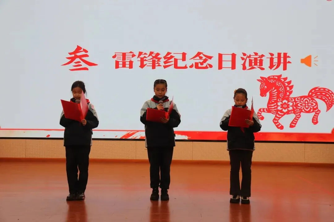 恰逢3月5日学雷锋纪念日,学校大队委代表带来了雷锋纪念日主题演讲。演讲中,大队委代表重温了雷锋同志的感人事迹,解读了新时代雷锋精神的深刻内涵,向全体同学发出倡议:从身边小事做起,践行奉献、友爱、互助、进步的志愿精神,以实际行动传承雷锋精神,争做新时代向上向善的好少年。真挚恳切的话语,赢得了全场师生的阵阵掌声。