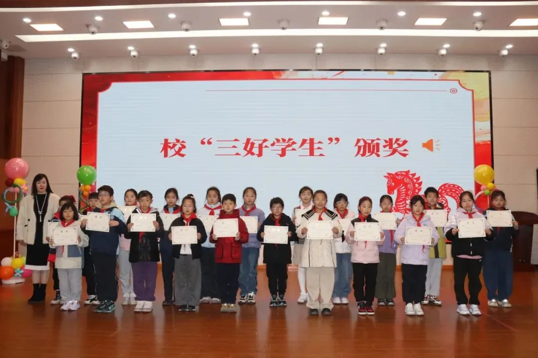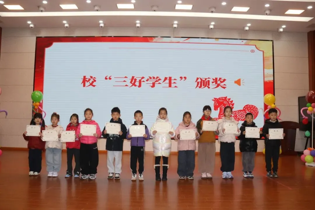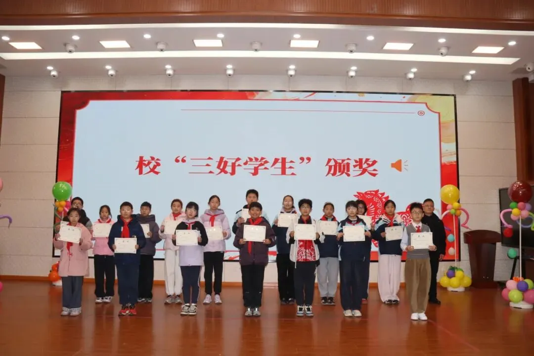 典礼现场还举行了隆重的表彰颁奖仪式,学校对2025-2026学年上学期表现优异的校“三好学生”、校“优秀班主任”进行了集中表彰。一张张沉甸甸的奖状,既是对过往成绩的充分肯定,更是对新学期奋进的有力激励,榜样的力量让在场全体师生备受鼓舞,进一步凝聚了新学期奋勇争先的精气神。