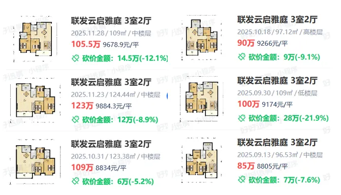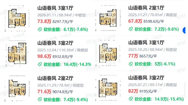 西片区,这两年的次新盘联发云启、山语春风更是惨不忍睹,成交价8200~9000元/㎡之间——
