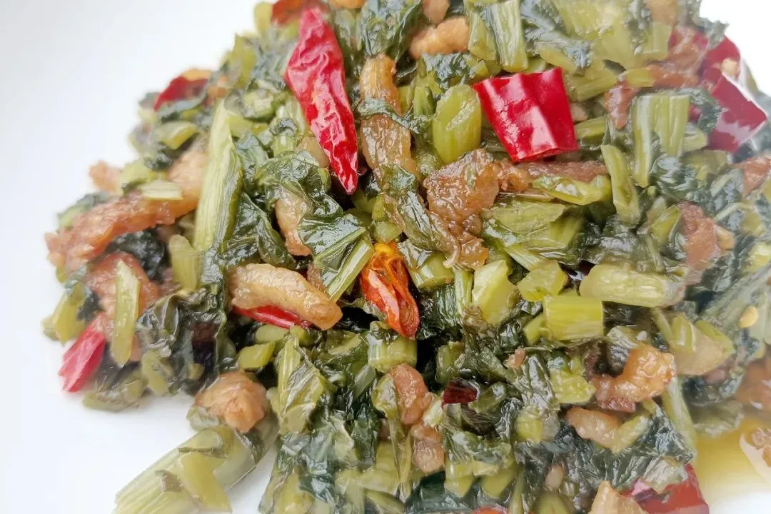 其实步入春天之后各家缸里还剩多少腌菜就该盘算盘算了,剩得少的吃几顿就完了,剩稍多的加油吃也能吃完,要是加油吃都吃不完那就赶紧捞出来晒干,晒干的腌菜就是梅干菜,放上很久都不会坏,梅干菜拿来烧肉可是绝配。