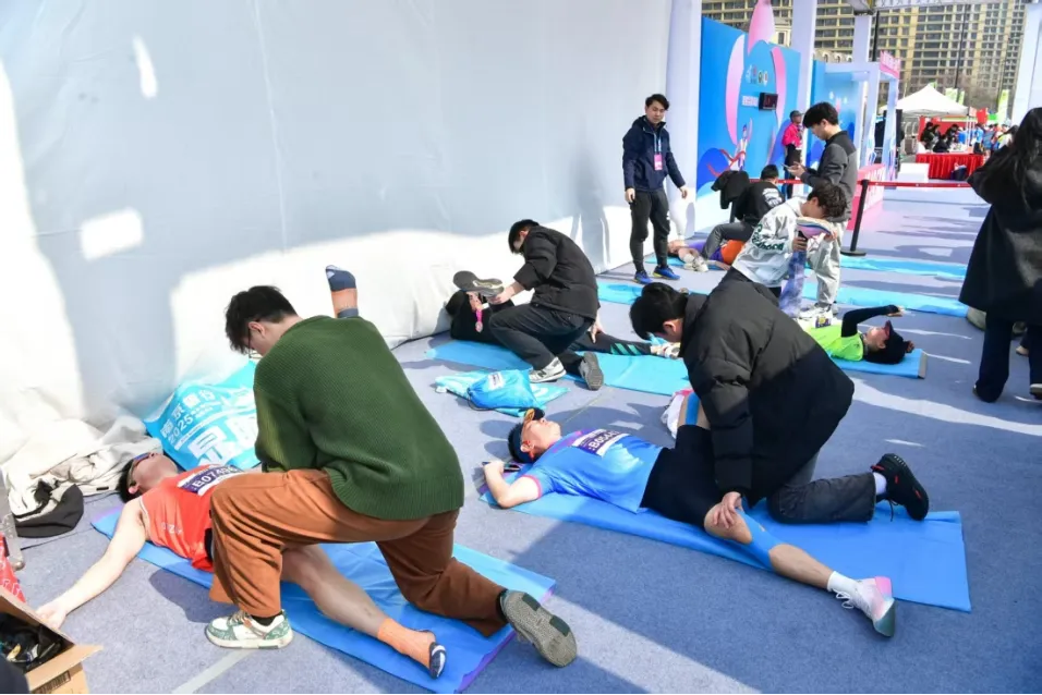 赛后专业的拉伸服务,帮您缓解冲线后的疲惫