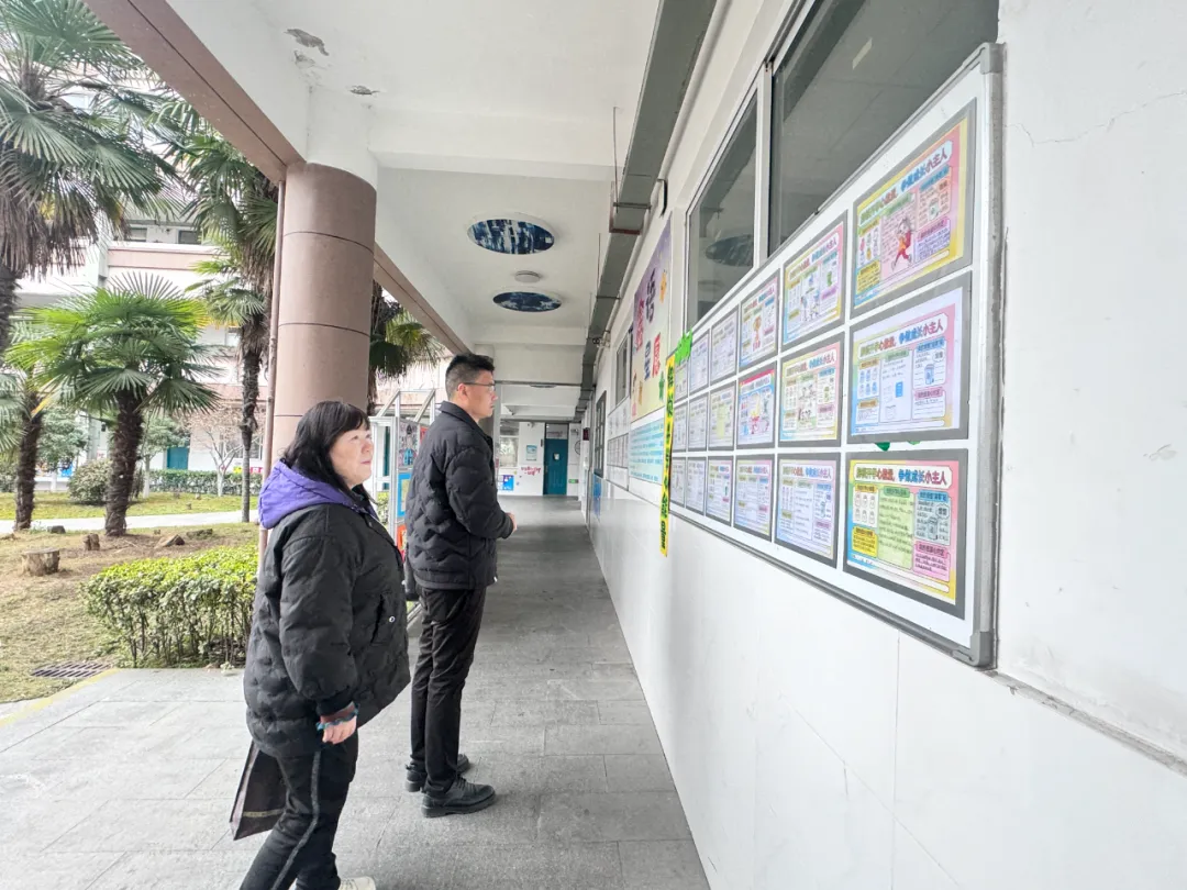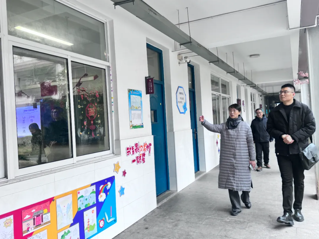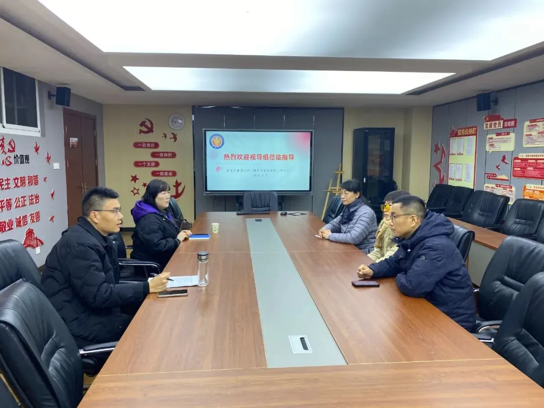视导组首先在二楼会议室听取学校新学期开学工作汇报。纪玲校长介绍了学校各项开学准备工作与发展规划。视导组详细了解了学校一教一辅规范使用情况、作业难度适中设计、家长护学岗常态化、校园安全、开学第一课主题教育、防欺凌委员会建设、食堂食材严格管控、收费项目规范公示、“215行动”与心理健康教育等开学重点工作;并细致了解学校发展需求与实际困难,提出针对性指导意见。