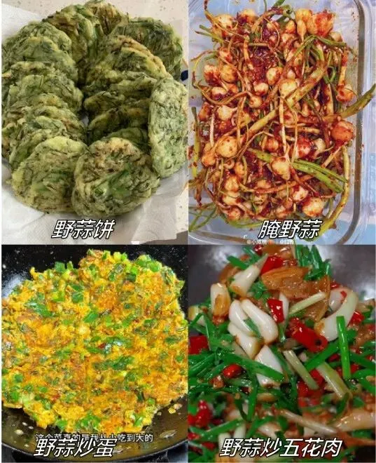 🥬野蒜,又名薤白、小根蒜,3-4月是最佳采收期,多见于山坡、田埂、林地边。兼具葱香蒜辣,可凉拌、炒鸡蛋、做馅、腌小菜,口感脆嫩辛香。