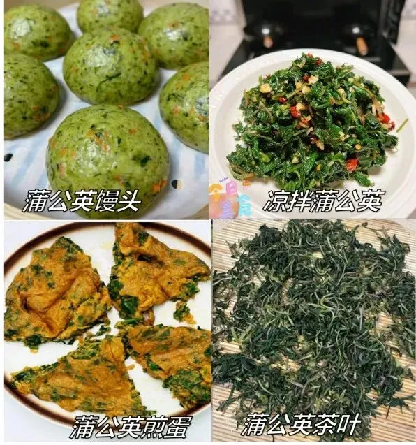 🥬蒲公英常见于疏林下或草坪上,喜欢阳光但也能耐半阴。未开花时,整株植物都可食用,口感微苦,清热降火,可晒干制成蒲公英茶叶泡茶,也可焯水后凉拌。