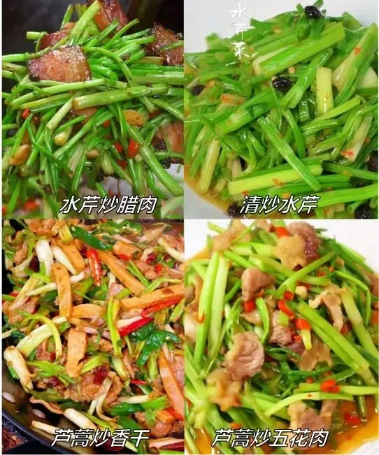 🥬水芹菜,多生于水田、沟渠;春季至初夏长势旺、口感最佳。茎中空翠绿,有清香味,口感脆嫩微甜,不冲鼻。焯水后可清炒、凉拌、炒香干,鲜嫩爽口。
