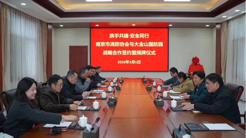 2026年3月5日,“南京市消防协会与大金山国防园战略合作签约暨产教融合实训基地揭牌仪式”在大金山举行。南京市消防协会名誉会长丁九鸿、会长诸德志、副会长吴学高、监事长王成林等领导及大金山国防园负责人共同出席了本次活动。