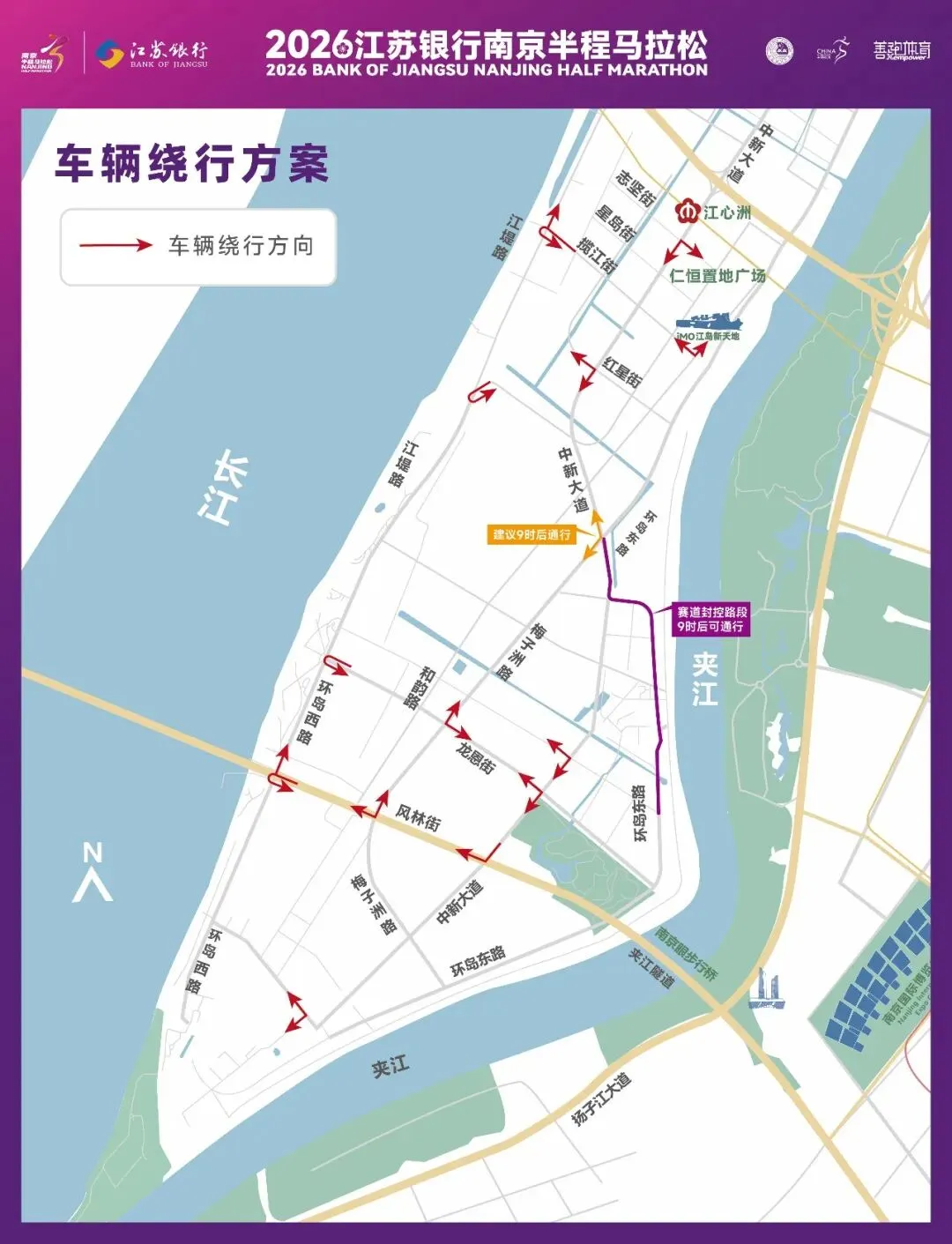 一、2026南京半程马拉松赛主要比赛路线和方向: