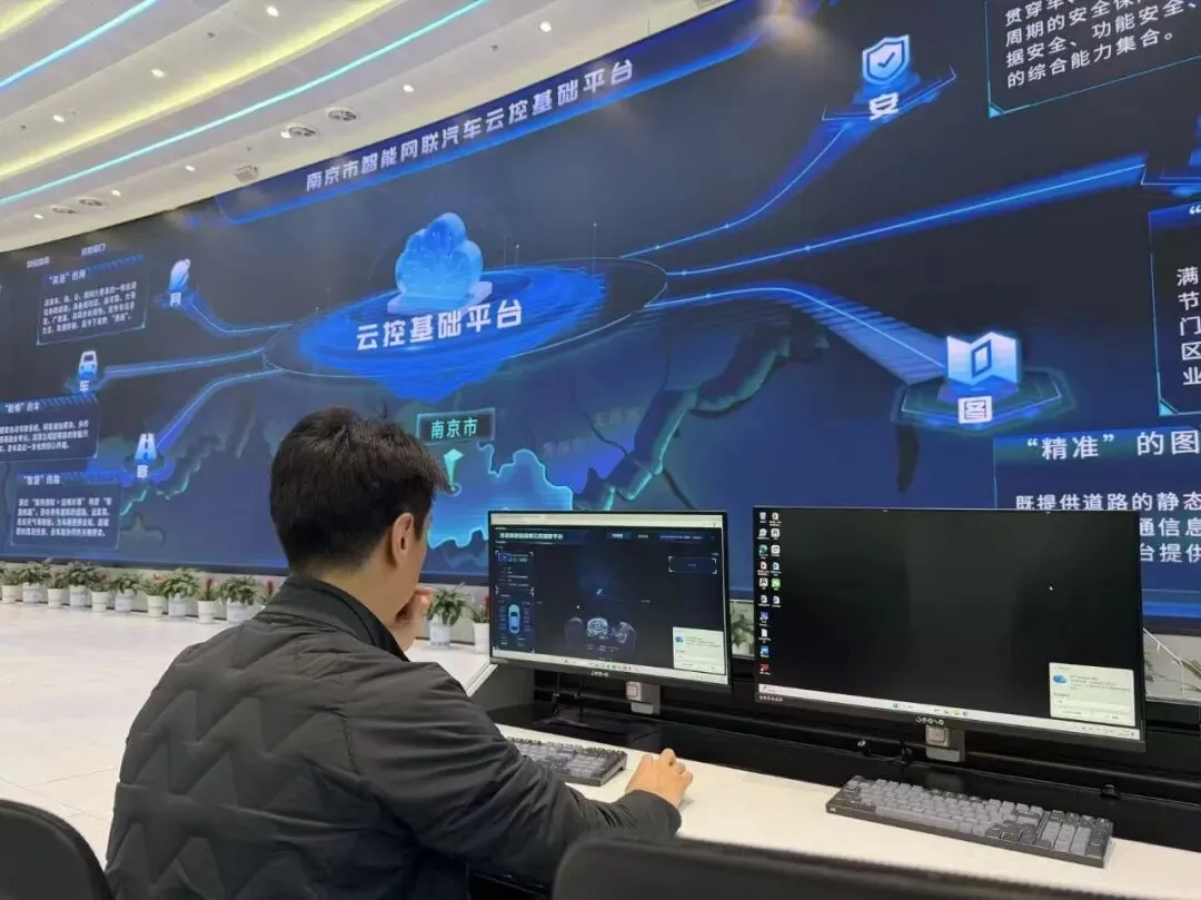 在市交通集团,通过正在测试中的南京市智能网联云控平台大屏,可以查看示范区及其他区域上牌车辆、测试车辆信息,道路测试点画面等内容。空地数智集团工作人员介绍,“车路云一体化”试点建设,目标是通过分层解耦的统一平台,打破各区信息孤岛,实现全市智能网联车辆全域、实时、闭环监管与数据赋能。