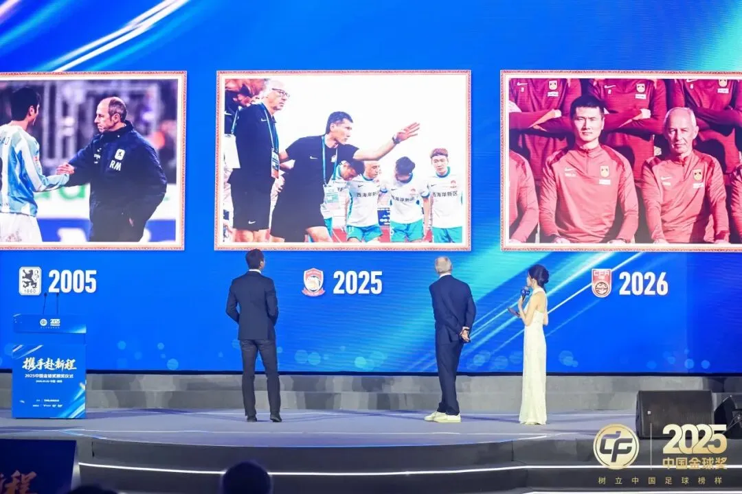 中国金球奖也把聚光灯投向年轻一代。今年,组委会特别奖授予了U23国足,用以肯定球队在U23亚洲杯闯入决赛的突破性表现。颁奖现场还设置了“携手赴新程”环节,拜合拉木、李昊、彭啸、徐彬等U23队员通过视频,为即将出征U17亚洲杯的年轻国脚送上寄语。舞台上的掌声与屏幕里的祝福彼此呼应,这两支极具青春之力的球队,在中国金球奖的舞台上完成同框,承载起更多期待。