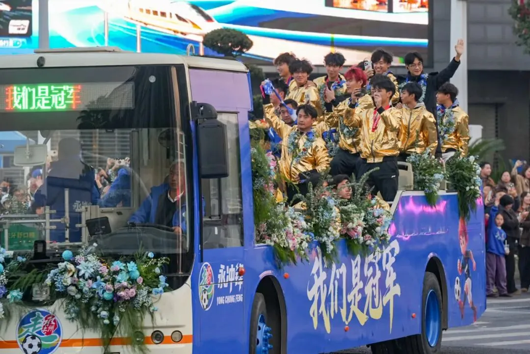 谈及湖南“湘超”冠军永州队的现象级出圈,永州市文旅广体局二级调研员赵荣学将其归结为多方合力:“首先是球队‘敢踢’,其次是球迷‘敢爱’,第三是政府‘敢为’,最后是城市层面的同心协力与服务意识。”在球队、球迷、政府与城市文化四股力量叠加之下,永州完成了从“告花子”球场出梗,到球队出彩,再到城市出圈的跃迁。