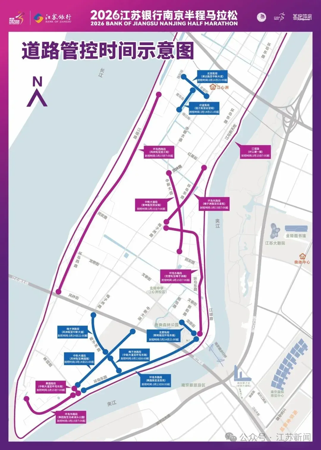 一、2026南京半程马拉松赛主要比赛路线和方向: