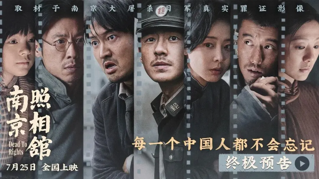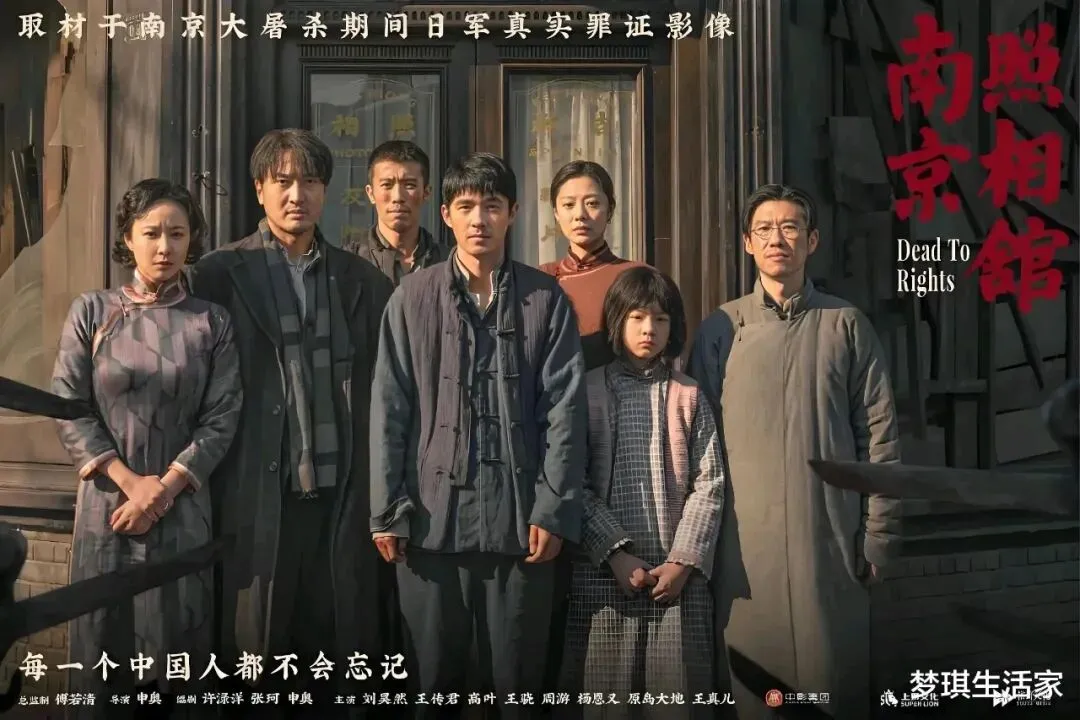 当七张面孔被电影胶片条切割成独立的画面,而“南京照相馆”五个白字则压在硝烟弥漫的背景之下时,这部电影已经确定了它的基调:它不是一部普通的抗战影片,而是写给历史的一封血色家书。海报上的英文DEAD TO RIGHTS(死得其所)好像一个预言,在这方寸之间所看到的是1937年南京城内最悲壮的一面战场。