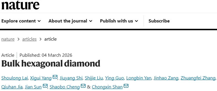六方金刚石(HD),又称为蓝丝黛尔石,因其理论硬度超越立方金刚石(CD),且可作为陨石撞击的矿物学标志而备受关注。自约60年前在陨石中发现后,科学家尝试通过高压高温处理或冲击压缩石墨等方式合成HD,但由于CD在热力学上更稳定,天然和合成产物中均优先形成CD,HD仅以微量存在,且易与具有堆垛层错的CD混淆,导致HD的物相真实性备受质疑。同时,冲击压缩等方法虽能观测HD的晶体结构,但样品会随之破坏,难以获取纯相HD。因此,HD的存在长期存在争议,其物理特性也因缺乏纯相样本而难以深入研究。