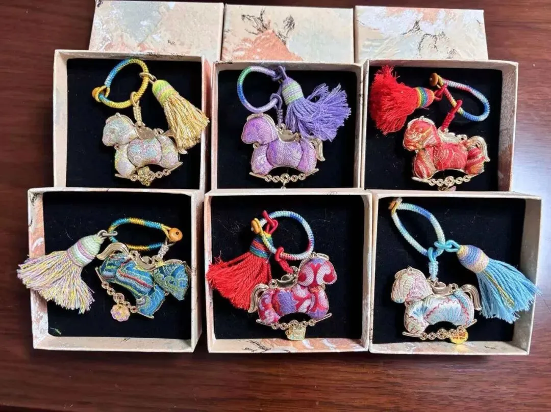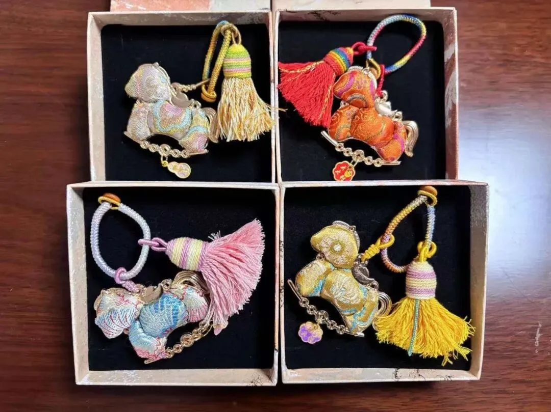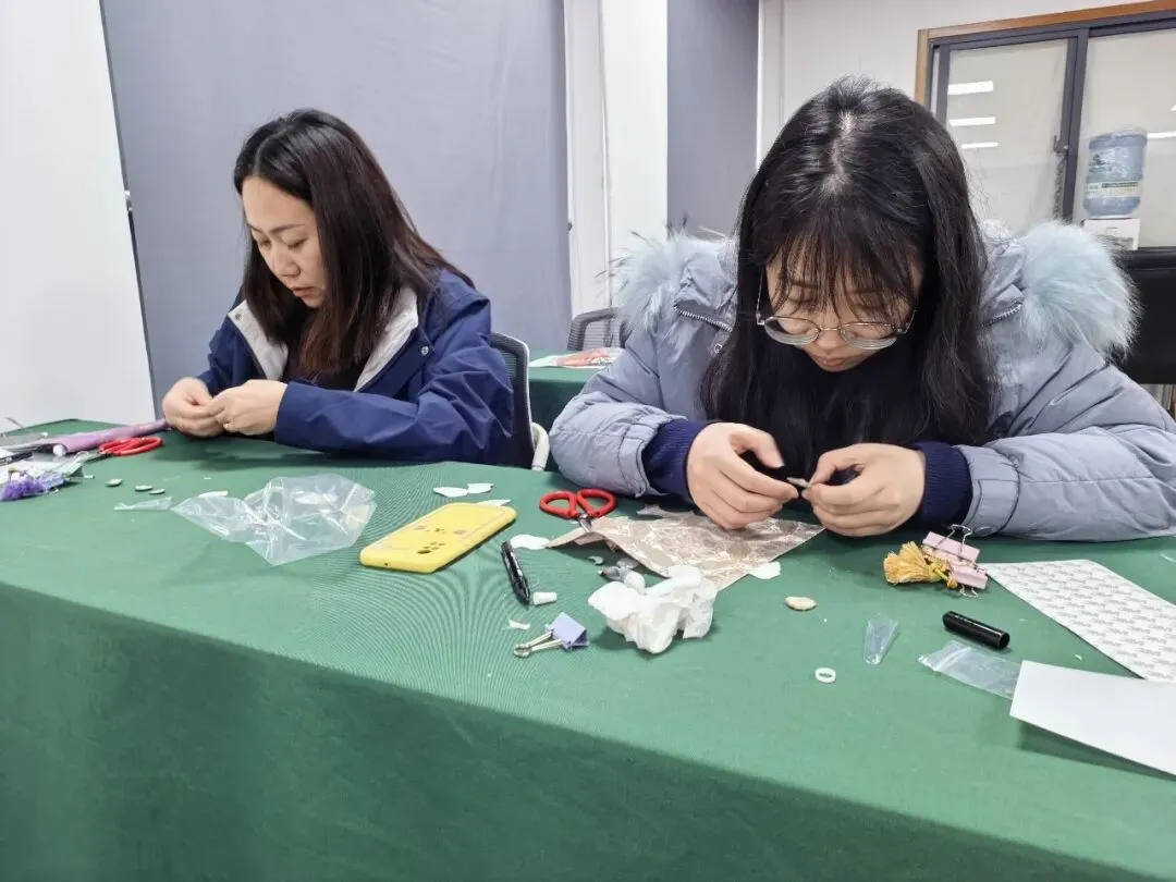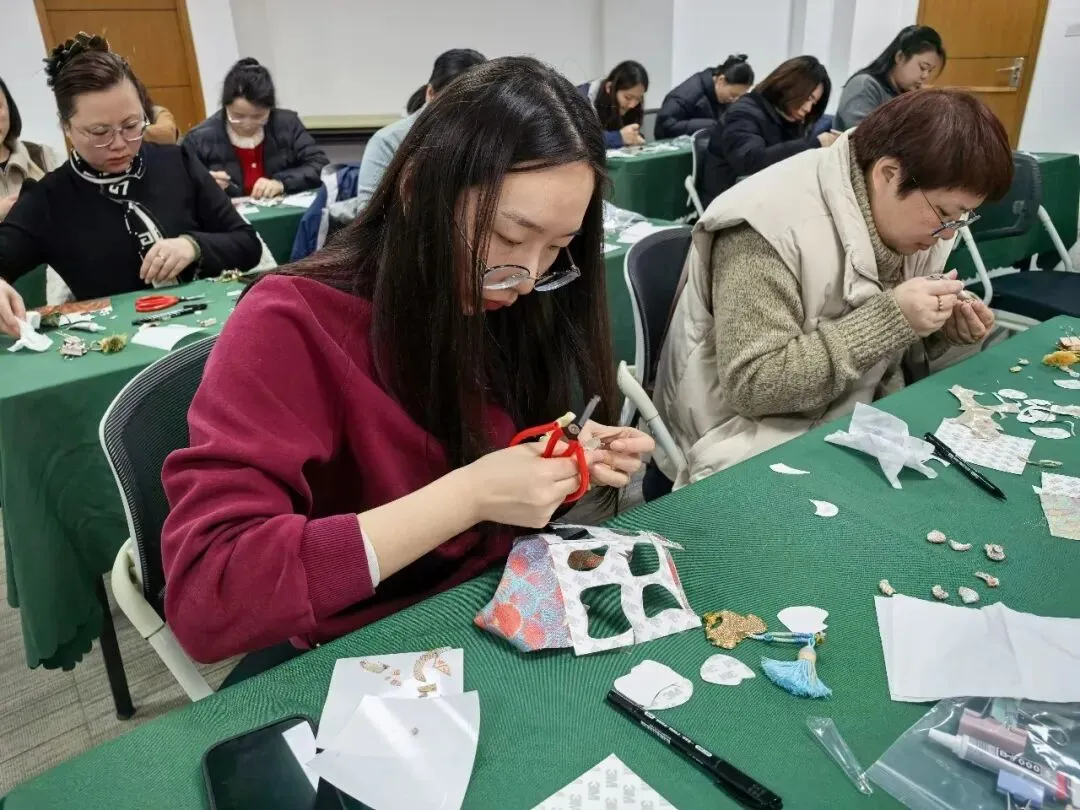 活动现场,女职工们裁剪面料时小心翼翼,搭配配饰时巧思妙想,交流心得时真诚分享,互帮互助解决制作过程中的难题,都构成了最动人的画面。经过一个多小时的精心创作,一件件色彩雅致、纹样精美的宋锦挂件陆续完成。女职工们手捧自己的作品,脸上洋溢着满满的自豪与喜悦,纷纷拍照留念,定格这份独特的手作快乐与成就感,也定格了属于自己的节日美好。