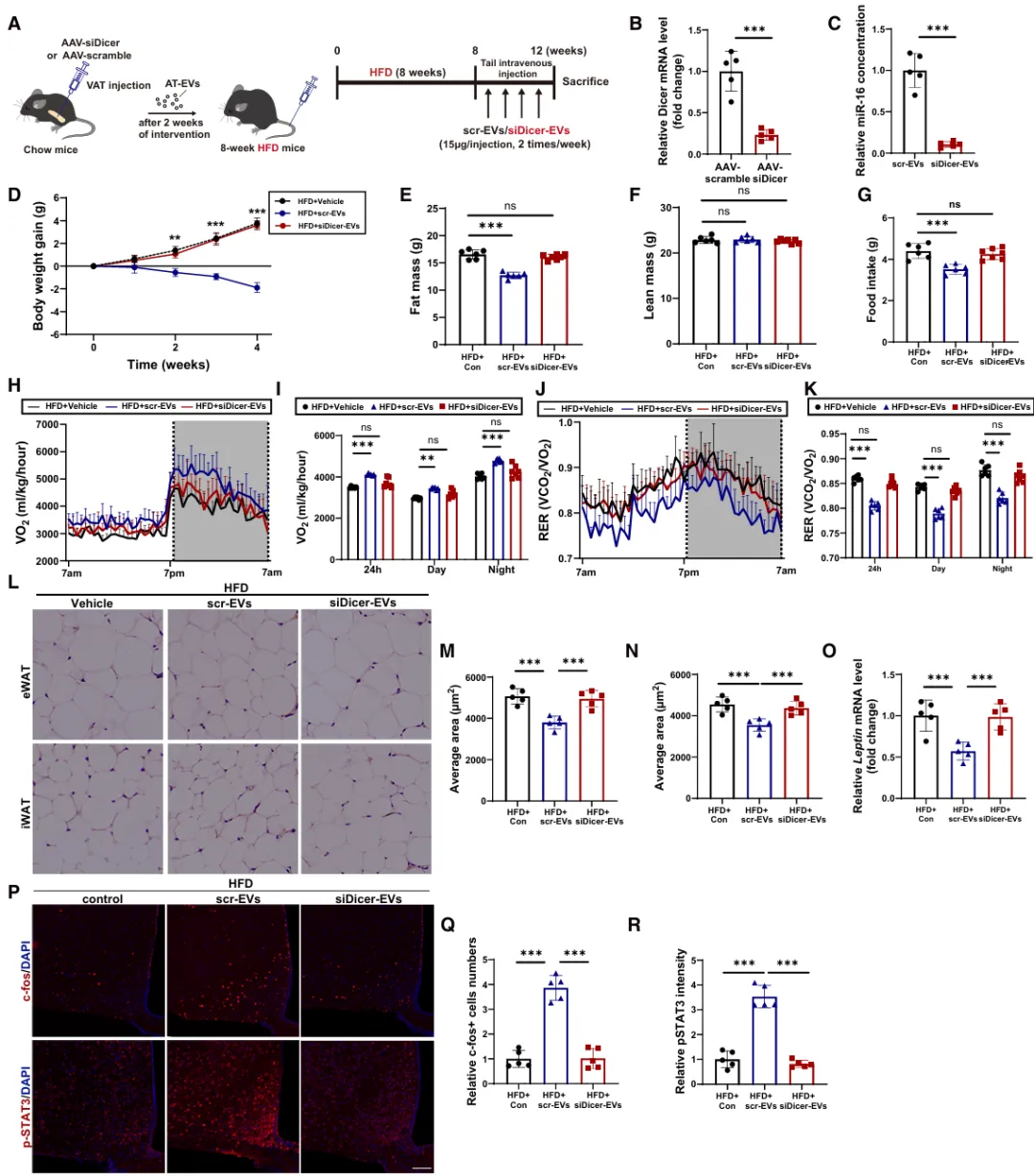 首先通过构建脂肪组织特异性囊泡(Ad-EVs)分泌抑制的小鼠模型,观察其对能量代谢的影响,确立Ad-EVs在维持能量平衡中的必要性。