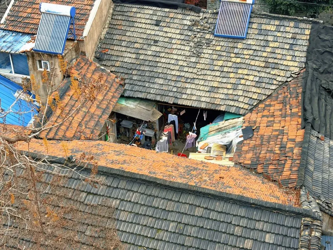 城墙下,有一段老城仍没有拆迁,我用长焦扫视一遍,依然十足生活气息,晾晒衣物,种菜的,养鱼的……