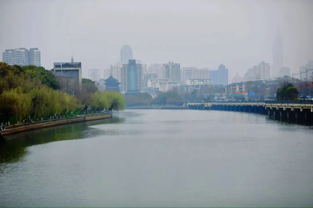 秦淮河在侧,静静流淌,