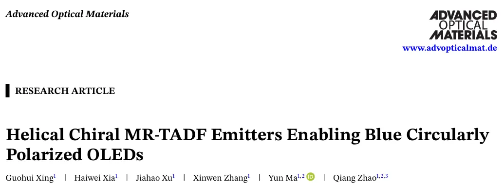 圆偏振有机发光二极管在下一代显示和成像应用中受到越来越多的关注,其关键挑战在于开发能同时实现高效率、窄带发射和强圆偏振特性的发光体。