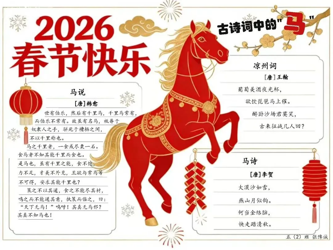 阅读,陪伴童年,点亮人生。寒假是静心阅读、积淀底蕴的黄金时光,同学们合理制定阅读计划,与经典为伴、与书香同行。他们在文学经典中遨游古今,在科普百科里探索未知,在历史故事中感悟变迁,让每日阅读成为假期里的温暖仪式。他们积极积累与新年、骏马相关的诗词,在吟诵中品味浓浓年味,感悟龙马精神,让优秀传统文化在琅琅书声中代代相传,浸润心灵。