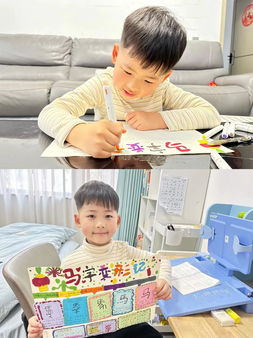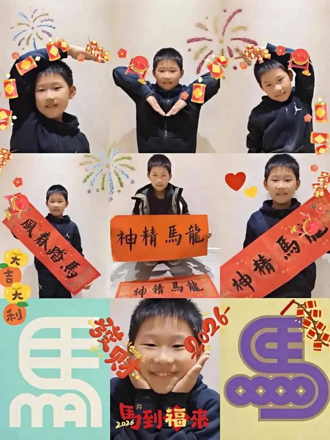 墨香承古韵,骏启中国年。同学们循着文化足迹,解锁马年新春的传统密码。低年级小朋友化身汉字小探险家,寻找 “马” 字旁汉字,探究字义演变,搜集成语典故,以小报、思维导图、创意漫画展示成果。中高年级同学从历史、精神、生活三个维度深度探究,了解马在古代的重要作用,品读历史故事,解读龙马精神,寻访生活中的马元素,在多维探索中传承中华文脉,感受传统文化魅力。