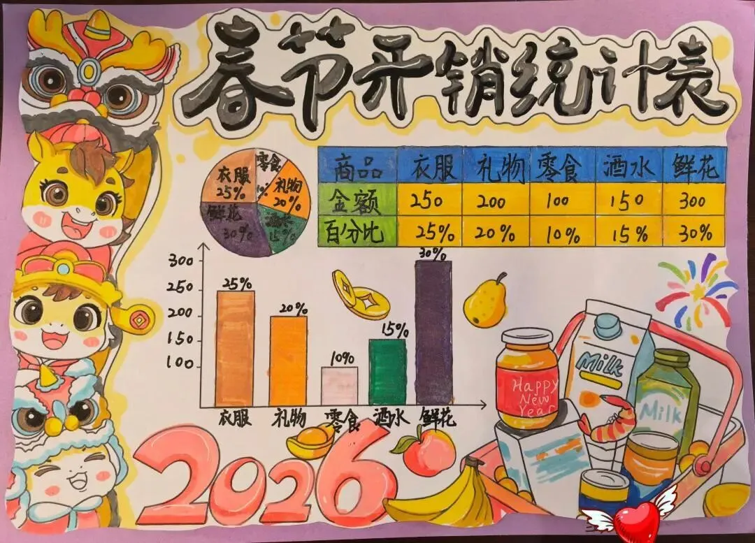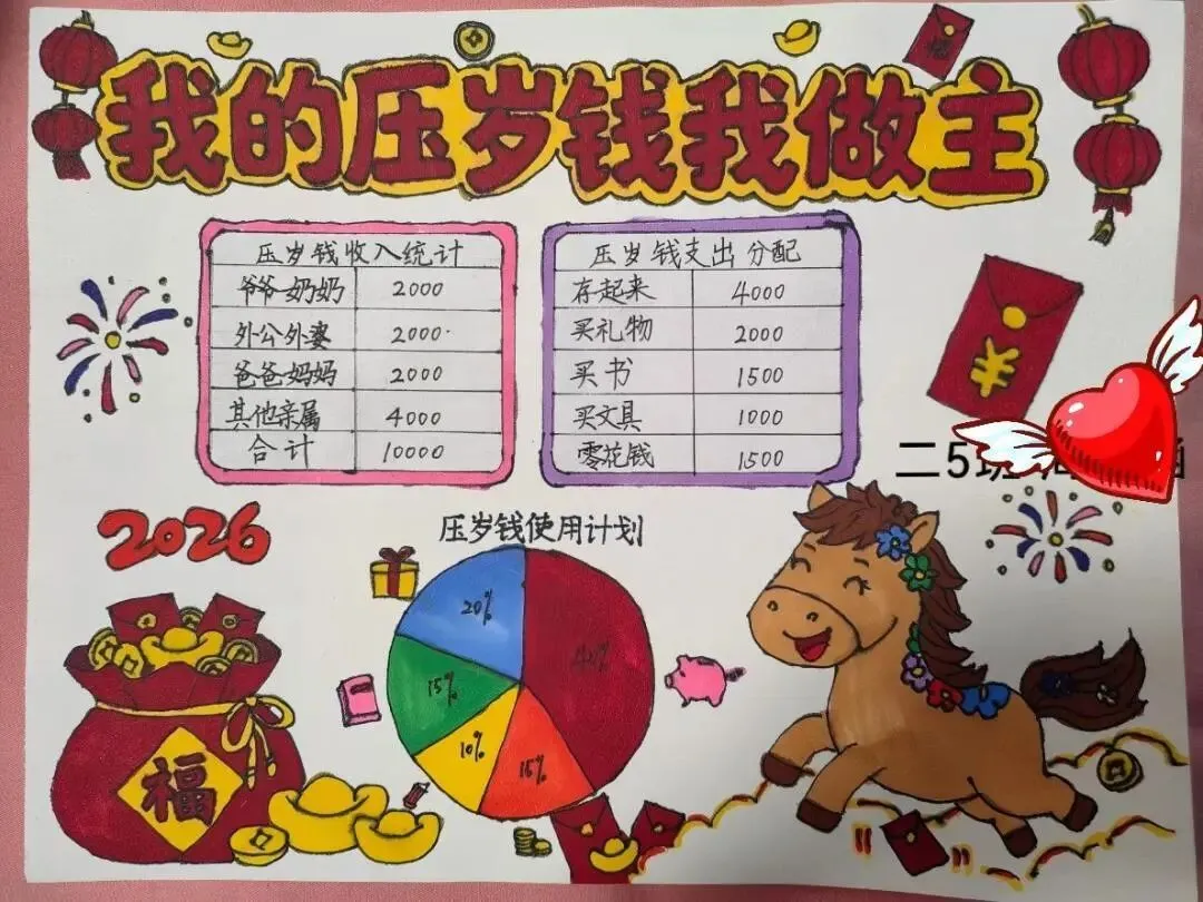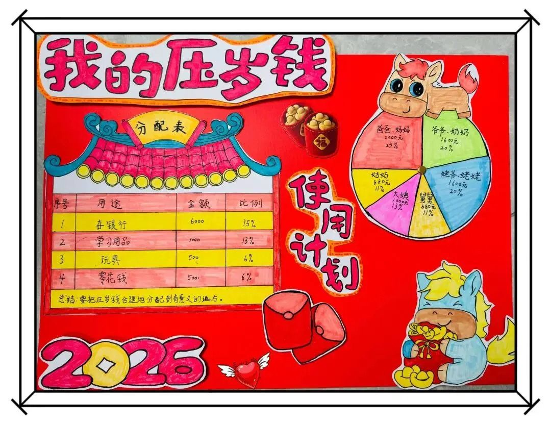 “数字赋能・智享新春” 主题活动将科技与年味巧妙融合,低年级同学化身小小理财师,认真记录压岁钱收支,用文字与图表梳理账目,结合数学知识制定储蓄、购书、公益捐赠等合理使用计划。他们在与家长采购年货时,主动估算价格、对比实际金额,真切感受数学与生活的紧密联系,在实践中树立正确的消费观与财富观。