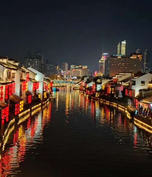 想玩得慢一点,骑辆单车穿过运河堤岸。运河水静静地流,星点灯光晕在水面,江南小城的安静被拉长,像一首不紧不慢的小曲。