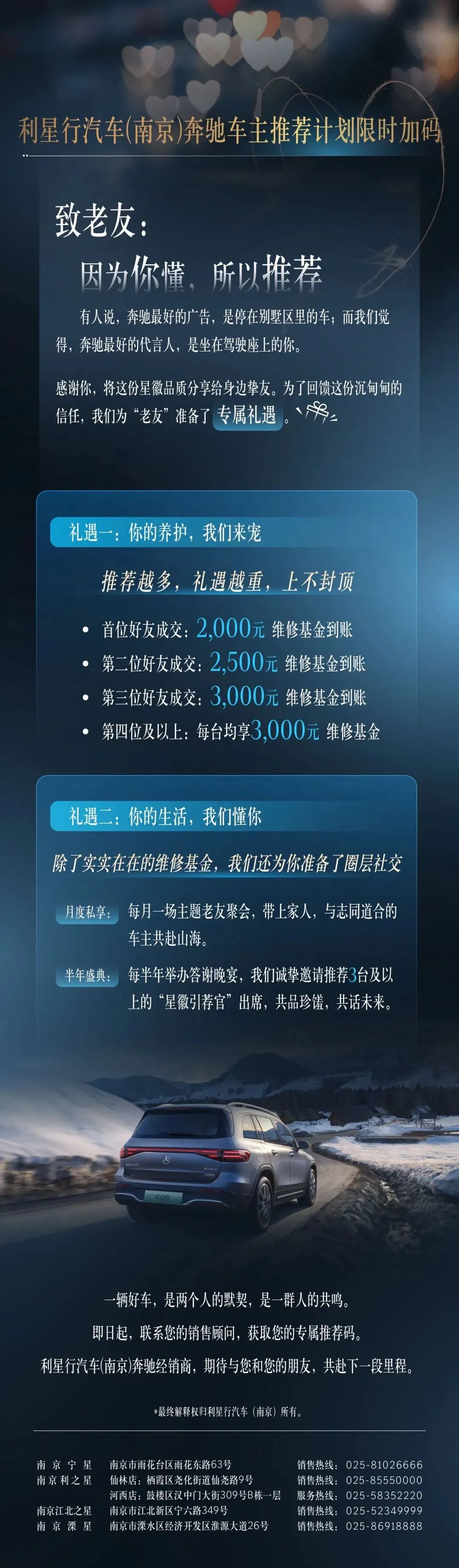 >致老友:利星行汽车(南京)奔驰车主推荐计划限时加码