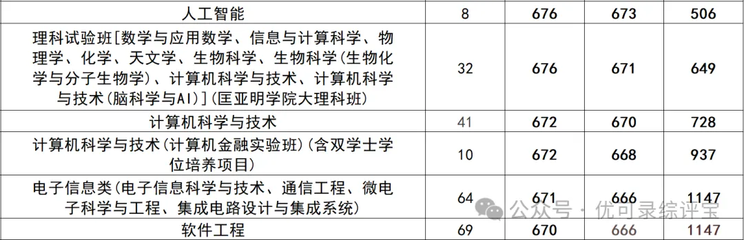 更惊人的是技术科学试验班和理科试验班类(数理科学类),最低位次1663名,最低分662。工科试验班、理科试验班类(化生类)、软工+工商、工业工程双学位等,最低位次1835名,最低分661。