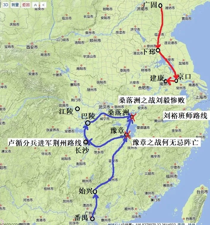 按我们在前面章节中的分析,卢循集团内部存在着三吴旧部与岭南新人之间的路线分歧,前者的代表徐道覆主张毕其功于一役,取晋室而代之;后者的代表卢循则主张割据一方,与朝廷分庭抗礼,《宋书·武帝纪》称其“多疑少决,每欲以万全为虑”正是为此。尽管卢循勉强依从徐道覆之计东进而非西取荆州,但其心中割据的思想仍占据主导,所以才如此保守,不愿付出牺牲,毕竟这些都是他未来割据称王的资本。而之后徐道覆再次请战,卢循依旧不许。