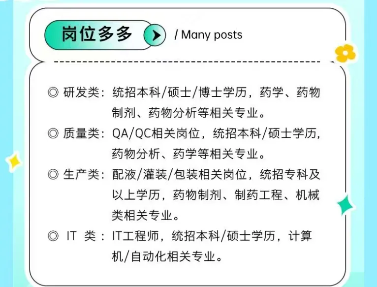 >南京药企3月招聘:医药研发、质量QAQC、生产、IT自动化岗位