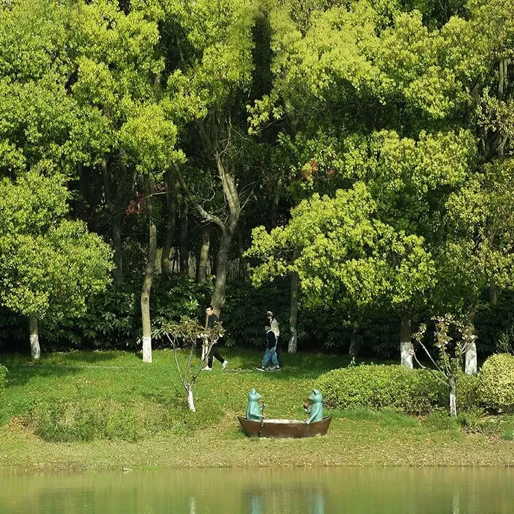 横贯园区的湖水风光无限,亲近自然,寓意净洁,而客房的院落建筑亦是沿着湖水排列,景观不一。