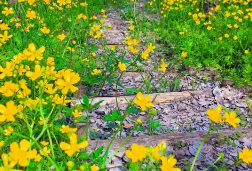 沿途还能看到各种各样的花卉,它们在微风中轻轻摇曳,绽放着绚丽的色彩。每一朵花都像是在向人们展示着它们的美丽和生命力。