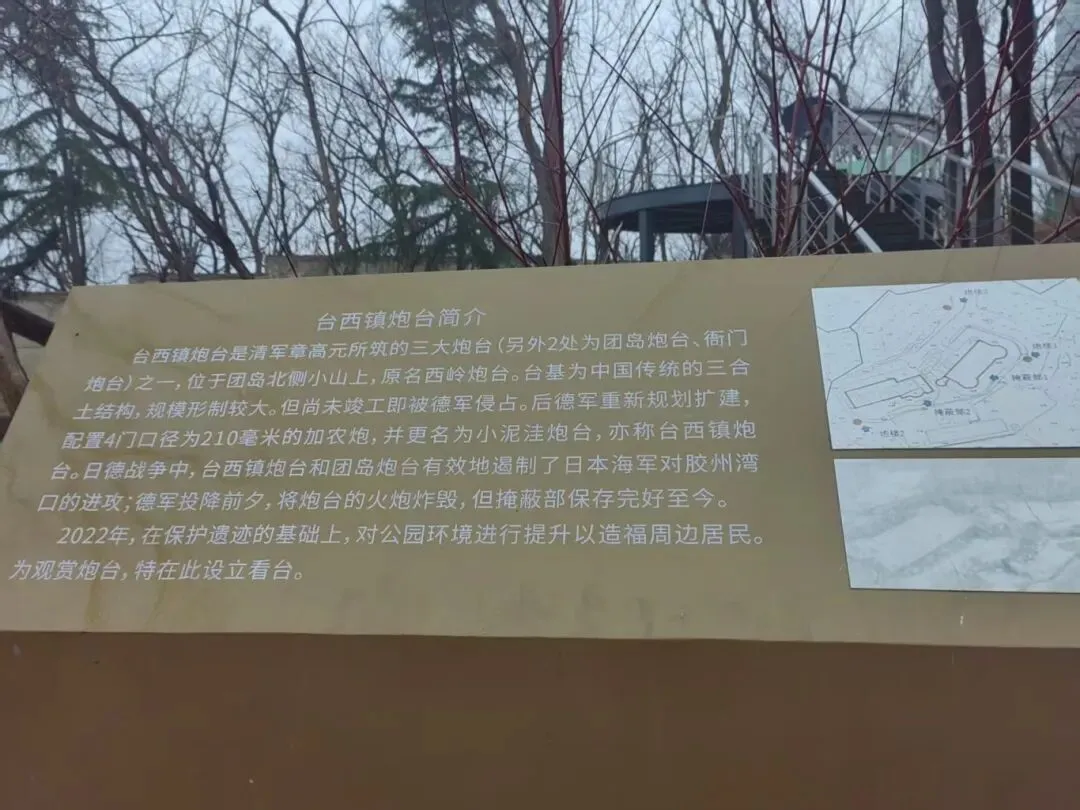 台西镇炮台静静矗立在团岛北侧的小山上,斑驳的石墙、古朴的掩体,无一不在诉说着跨越百年的沧桑故事。这里曾是清军始建的西岭炮台,1897年初冬,章高元部在此动工修筑海防工事,想要守护这片临海要地,可工程尚未竣工,便被德军侵占。