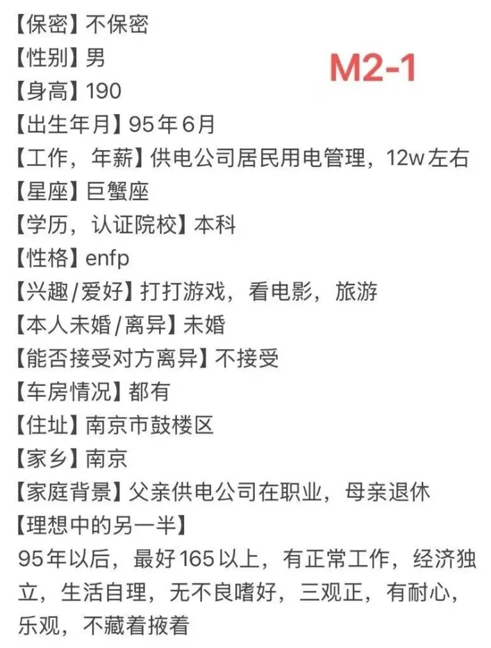 南京月老丨1995年,男,身高190,本科学历,供电公司工作,年薪12W左右