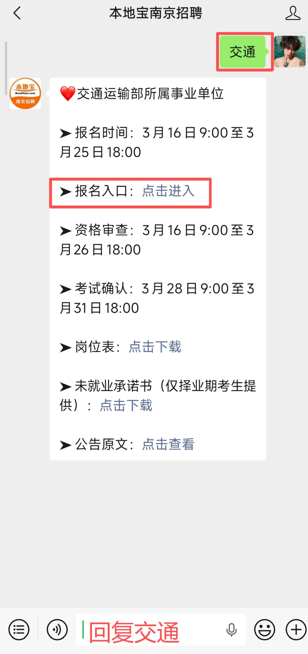 报名时间:3月16日9:00至3月25日18:00。报名方式:您可以长按下方二维码,关注【本地宝南京招聘】公众号,回复【交通】,即可直达报名入口!
