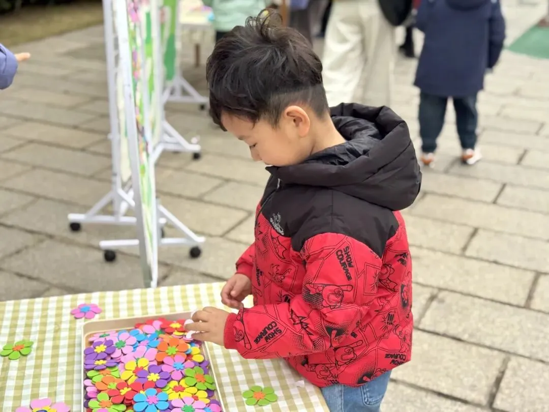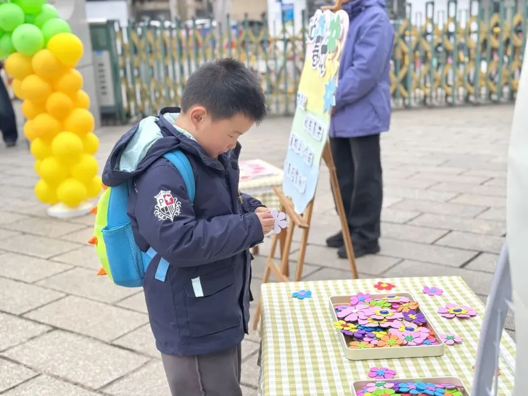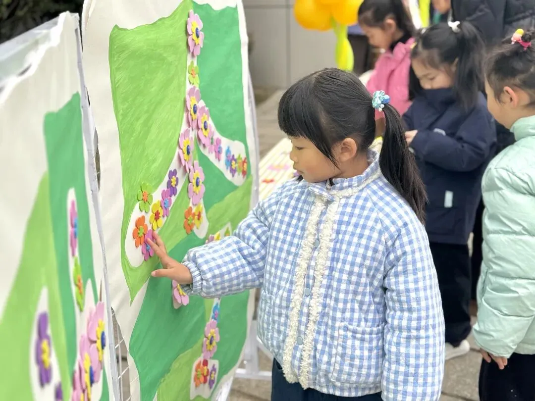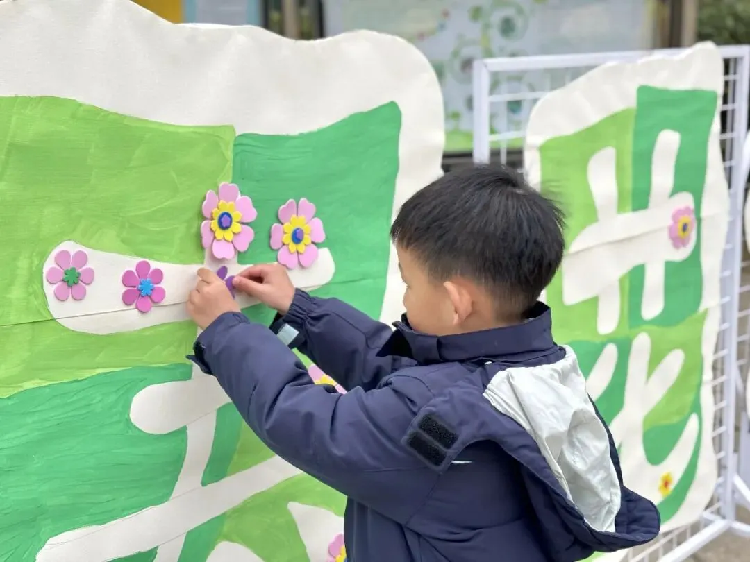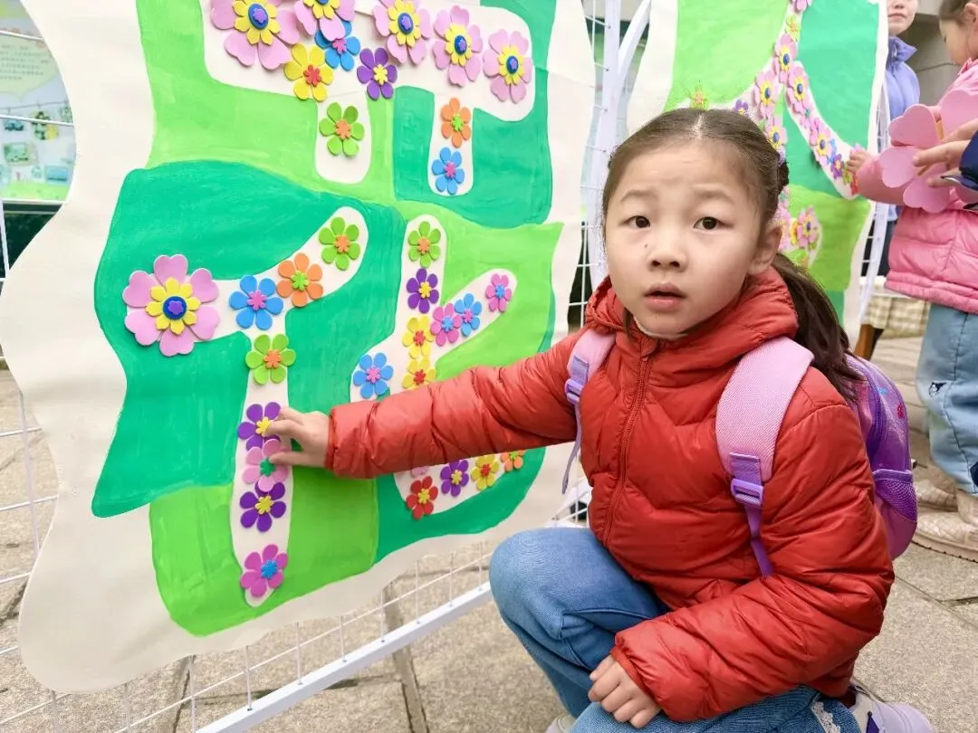孩子们精心挑选了代表不同祝福的春花,将头探出花蕊,许下了新学期的第一个小愿望。