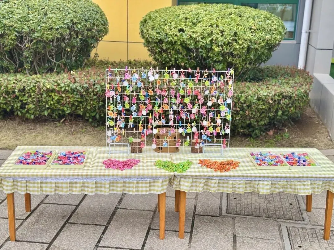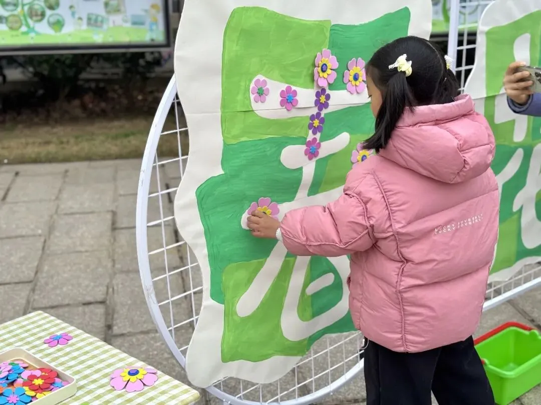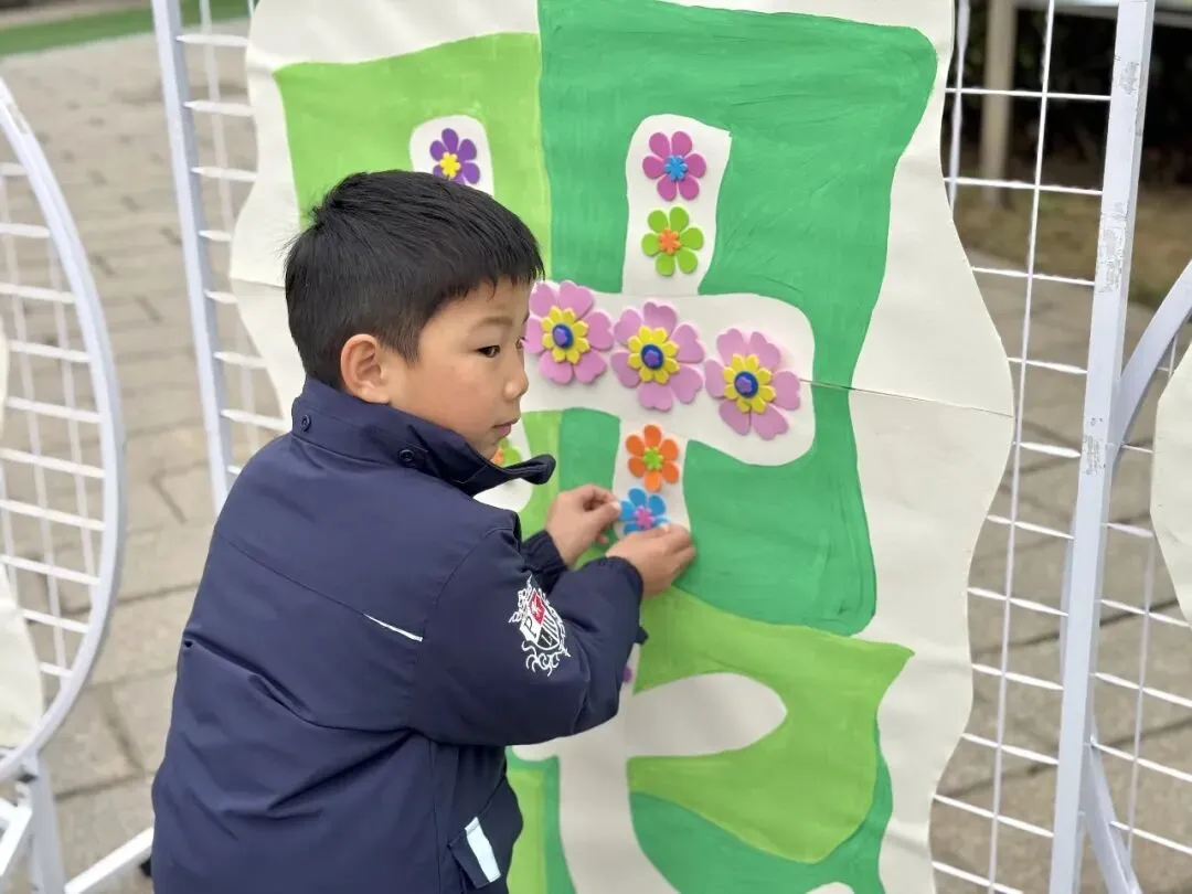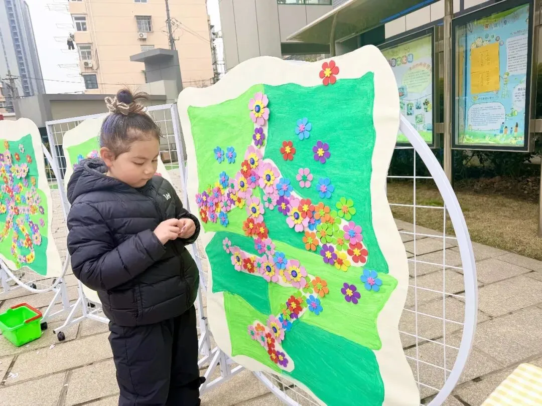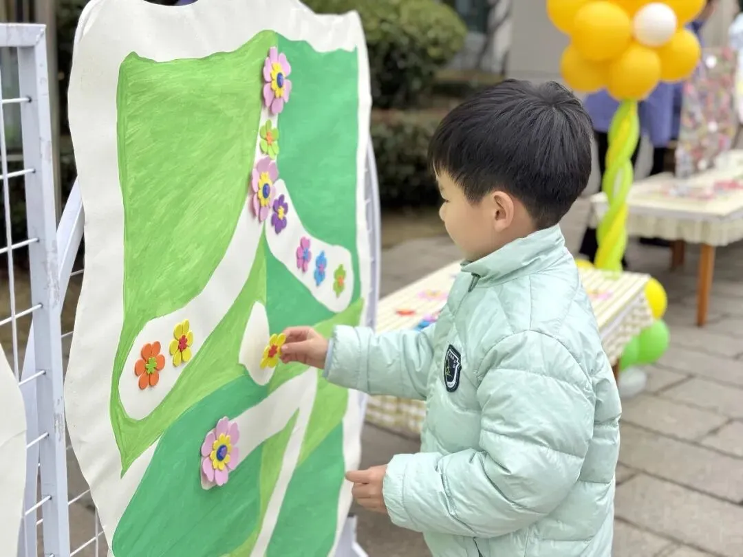 孩子们精心挑选了代表不同祝福的春花,将头探出花蕊,许下了新学期的第一个小愿望。
