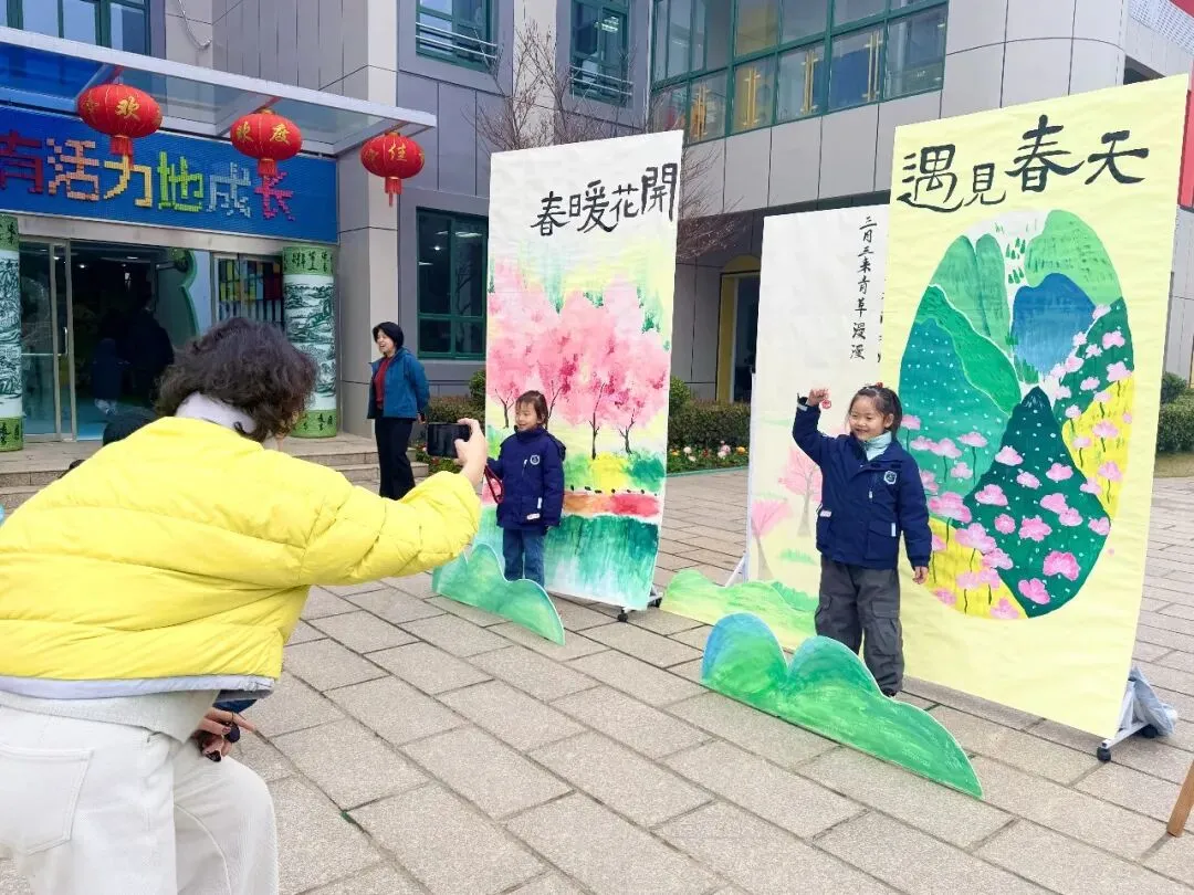 在老师们精心布置的“春天画卷”背景前,孩子们和自己的小伙伴、家长们一起合影。灿烂的笑容,稚嫩的脸庞,都被镜头永远定格,成为这个春天第一份珍贵的回忆。