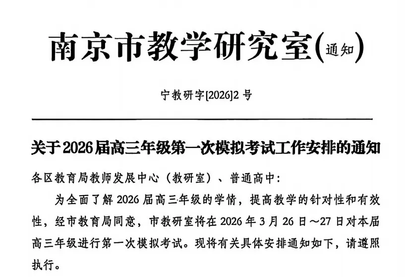 将在2026年3月26日~27日对2026届高三考生进行第一次模拟考试。