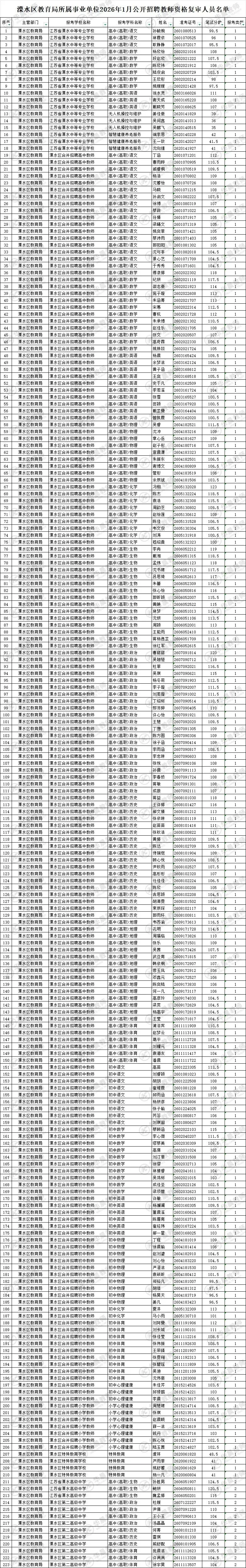 根据《南京市溧水区教育局所属事业单位2026年1月公开招聘教师公告》(溧事招公告(R)〔2026〕1号) 的要求,溧水区教育局将组织资格复审及面试确认工作。现将具体事项通知如下: