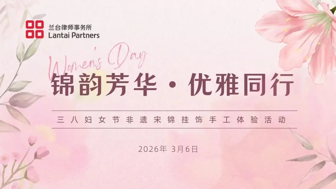 三月春风,温婉如歌;巾帼芳华,灼灼其华。在第116个“三八”国际妇女节来临之际,兰台南京办公室特别策划非遗宋锦挂饰手工体验活动,以千年织锦为媒,以匠心手作为礼,让大家在繁忙的工作之余,暂别案卷与法条,沉浸式感受非遗之美,共度一段雅致、温暖、治愈的美好时光。