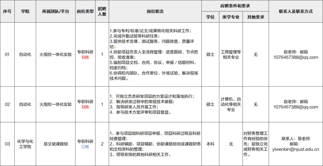 C类岗:具有大学本科及以上学历,熟悉相关学科科研工作,具备完成聘请团队安排任务的基本能力。