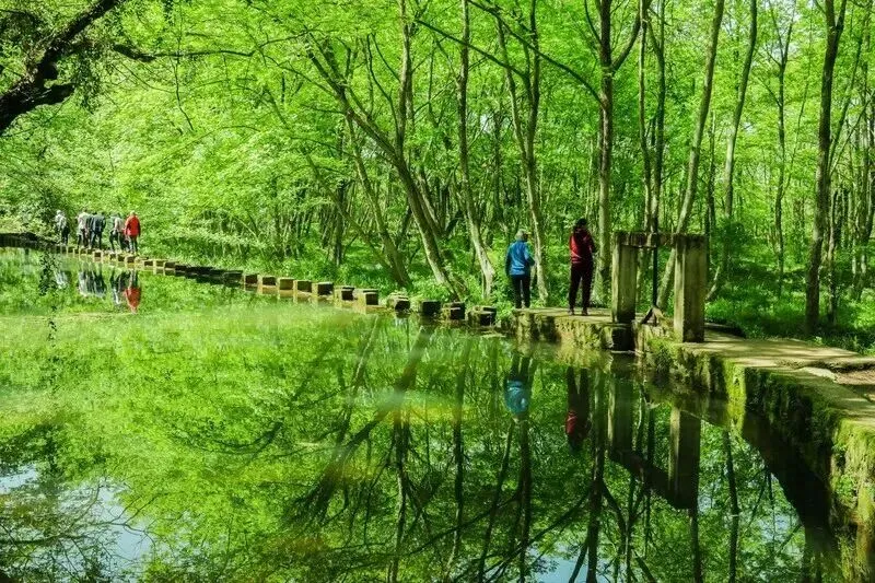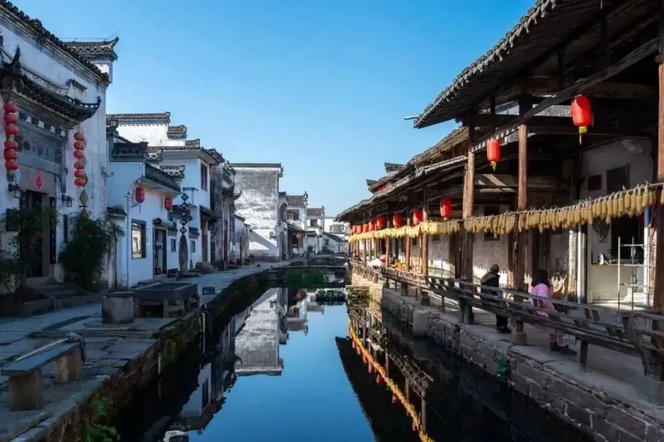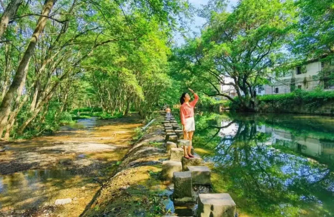 西溪南村坐落于黄山南麓新安江支流丰乐河畔,粉墙黛瓦的徽派民居沿河而建,村口延绵6公里的枫杨林是村庄的“绿肺”,参天大树与潺潺流水构成“绿野仙踪”的生态秘境。